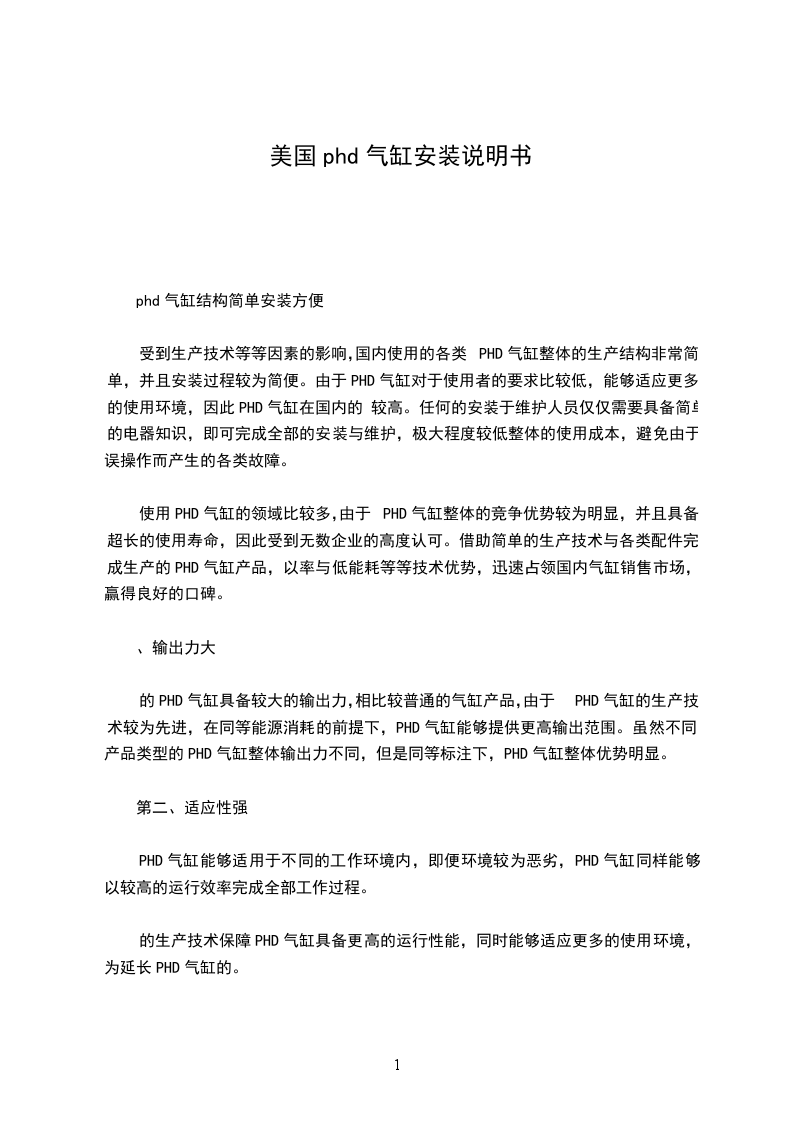 phd气缸具备的优点