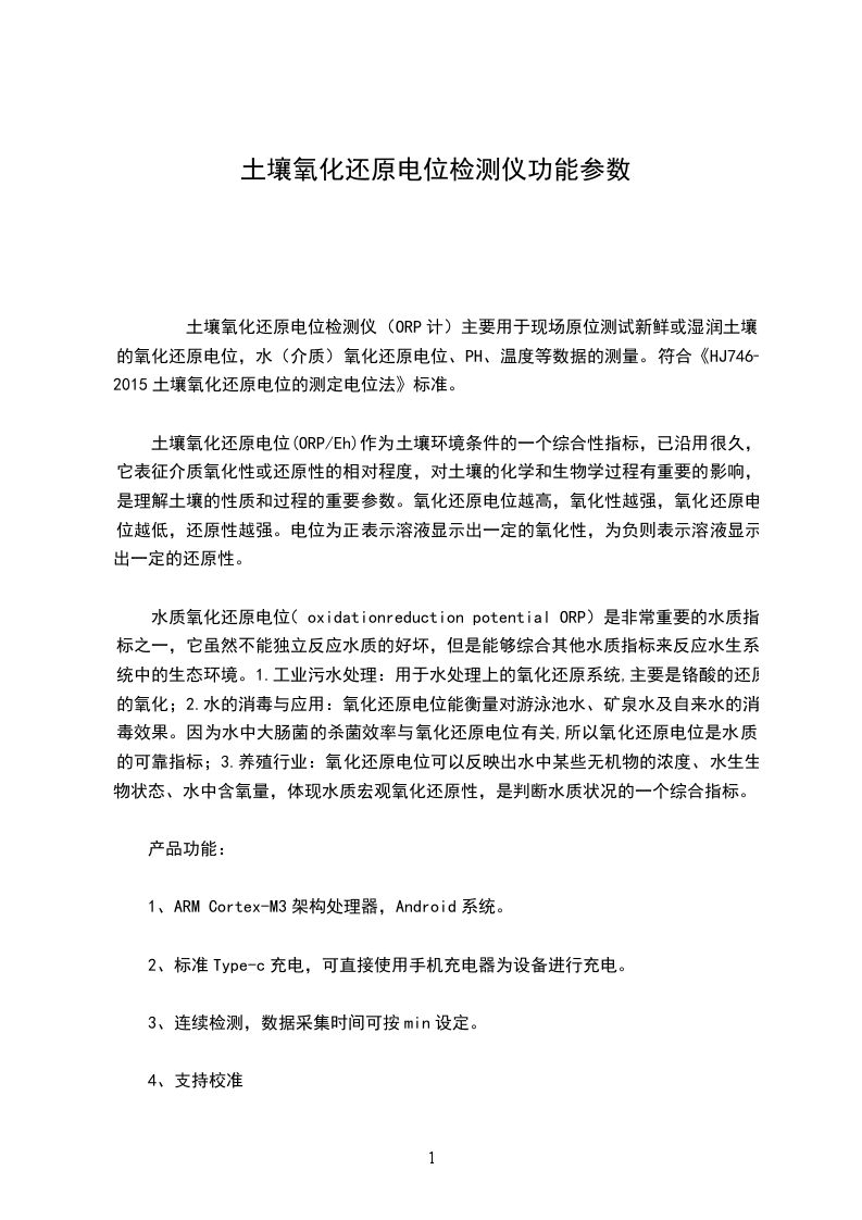 土壤氧化还原电位检测仪(ORP计)主要用于现场原位测试新鲜或湿润土壤的氧化还原电位,水(介质)氧化还原电位、PH、温度等数据的测量。符合《HJ746-2024土壤氧化还原电位的测定电位法》标准。