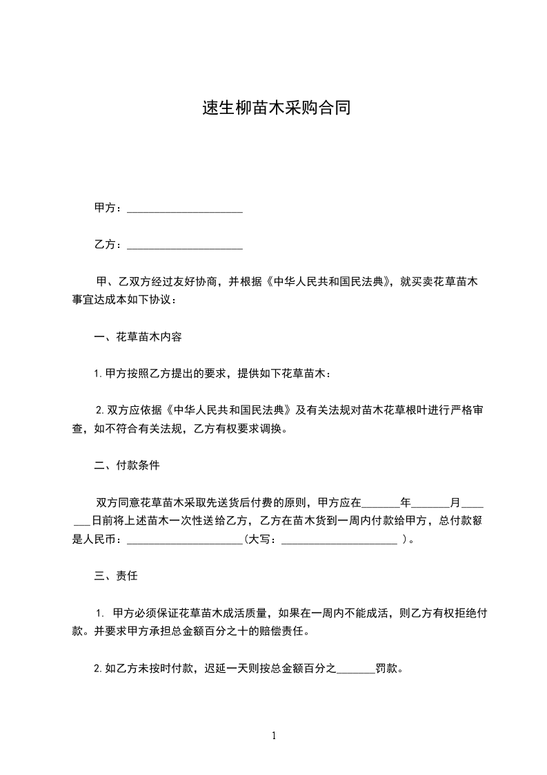 1. 甲方必须保证花草苗木成活质量,如果在一周内不能成活,则乙方有权拒绝付款。并要求甲方承担总金额百分之十的赔偿责任。