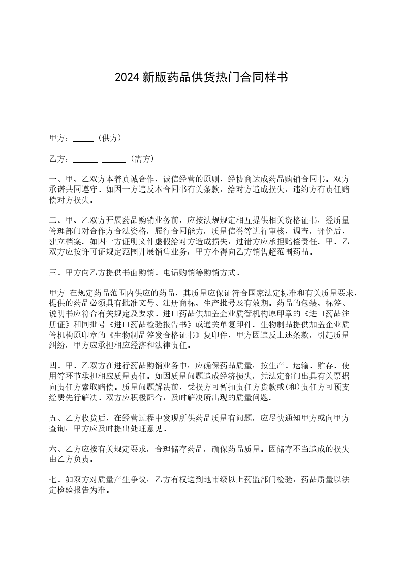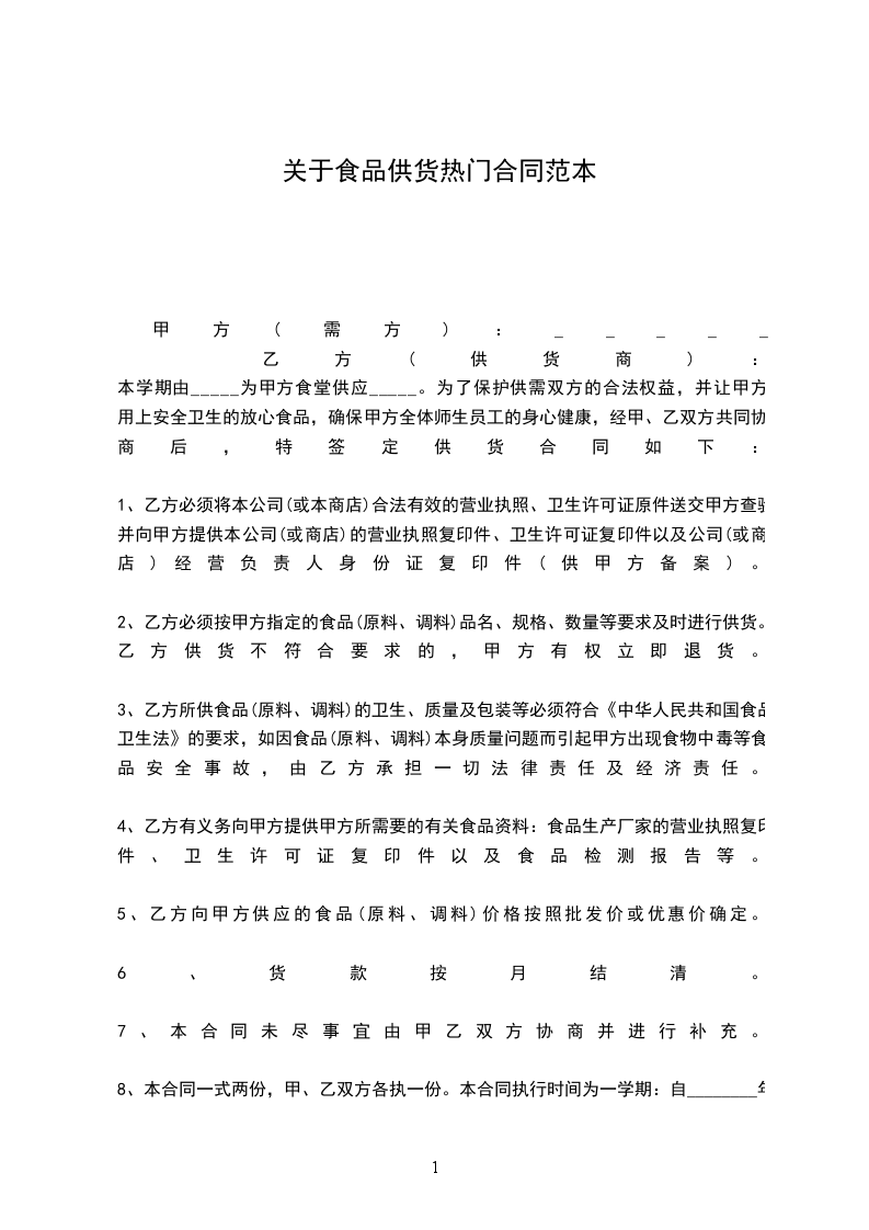 供方: (以下简称乙方)签定地点: