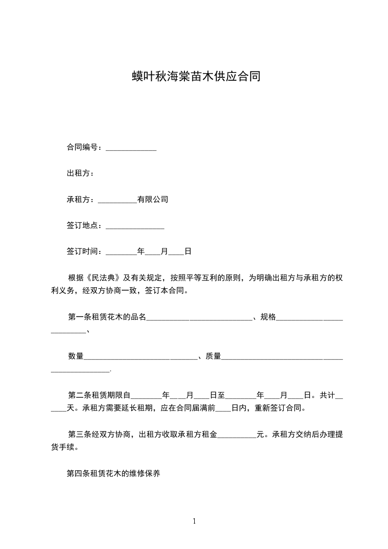 1.甲方按照乙方提出的要求,提供如下花草苗木: