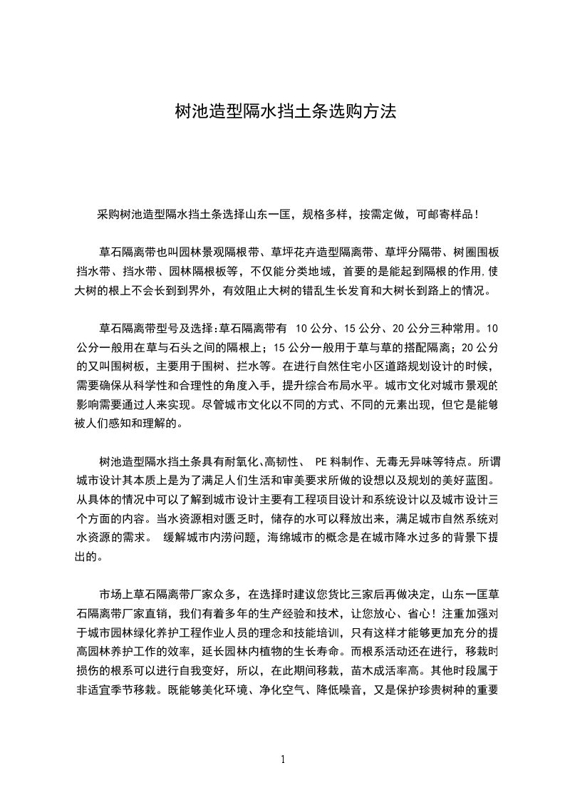 树池造型隔水挡土条具有耐氧化、高韧性、PE料制作、无毒无异味等特点。所谓城市设计其本质上是为了满足人们生活和审美要求所做的设想以及规划的美好蓝图。从具体的情况中可以了解到城市设计主要有工程项目设计和系统设计以及城市设计三个方面的内容。当水资源相对匮乏时,储存的水可以释放出来,满足城市自然系统对水资源的需求。 缓解城市内涝问题,海绵城市的概念是在城市降水过多的背景下提出的。