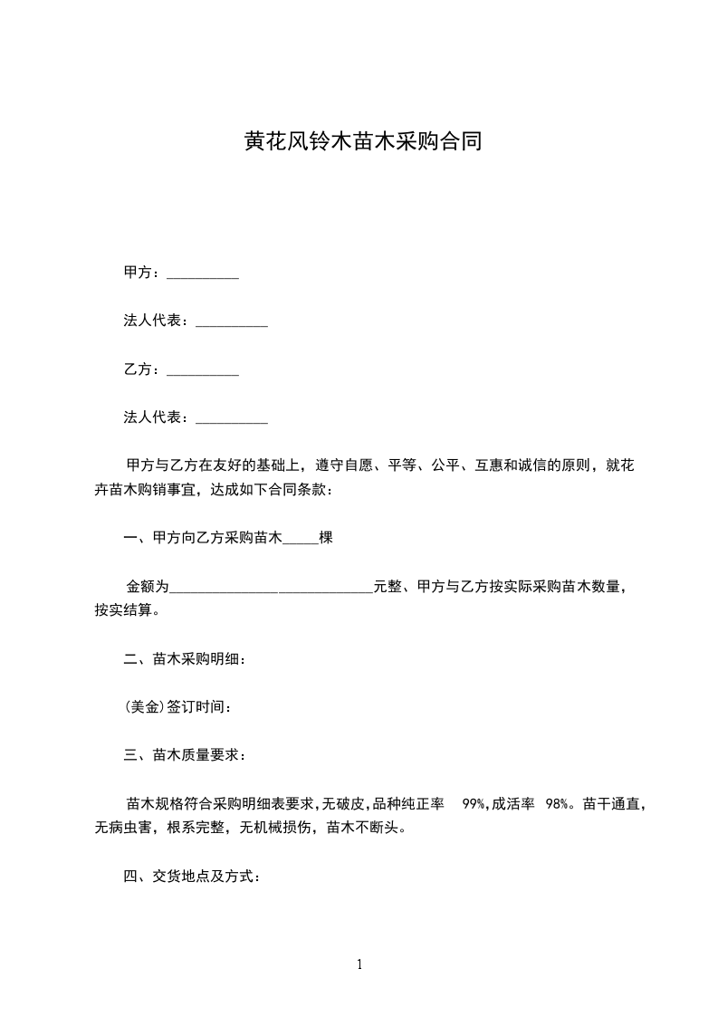 一、甲方向乙方采购苗木_____棵