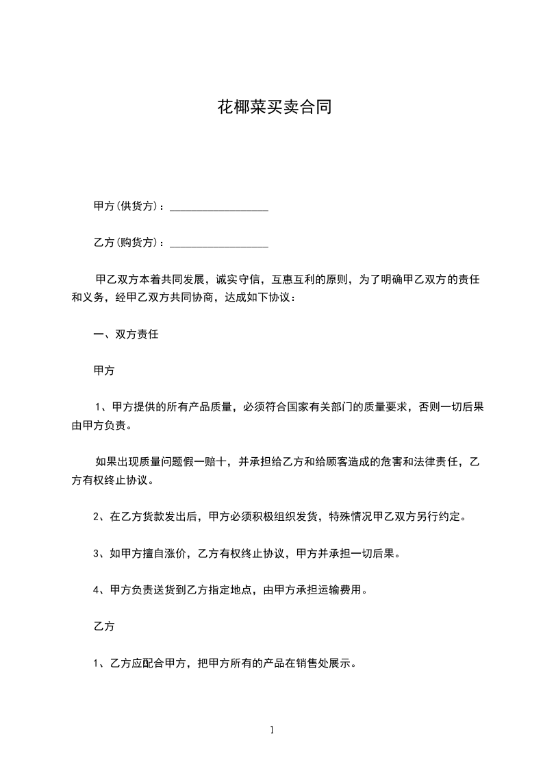 二、结算方式:以实销为准,每月20号前结清上月货款。