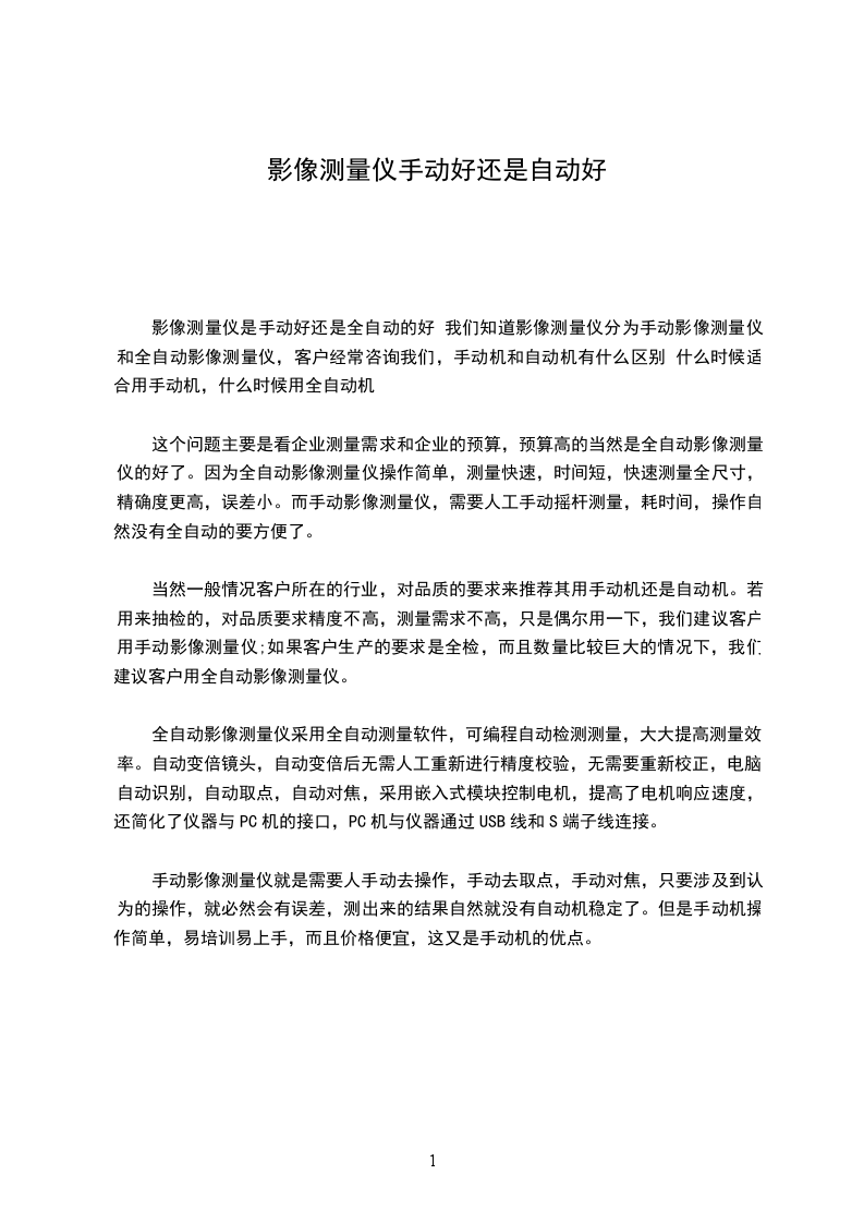 当然一般情况客户所在的行业,对品质的要求来推荐其用手动机还是自动机。若用来抽检的,对品质要求精度不高,测量需求不高,只是偶尔用一下,我们建议客户用手动影像测量仪;如果客户生产的要求是全检,而且数量比较巨大的情况下,我们建议客户用全自动影像测量仪。
