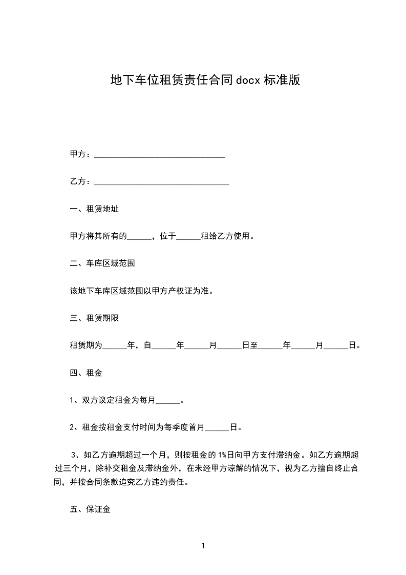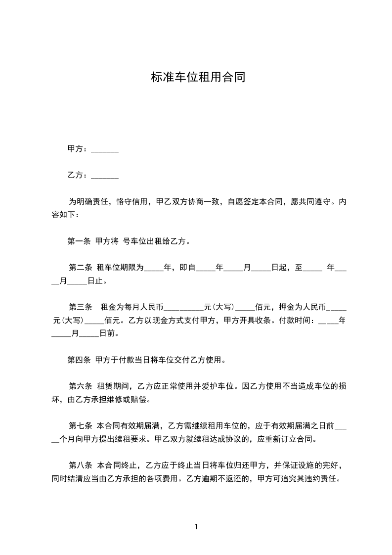 一、甲方将面积约1500平方米停车场地提供给乙方使用。甲方按每月收取乙方场地使用费合计人民币:3000元。本合同签订的同时,乙方须向甲方缴纳人民币_5000_元作为合同保证金(即场地押金),甲方在双方协议合法终止后____日内无息返还给乙方。