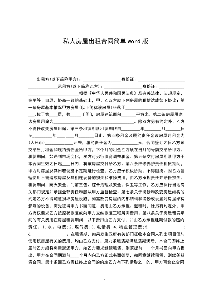 房屋租赁合同(一)