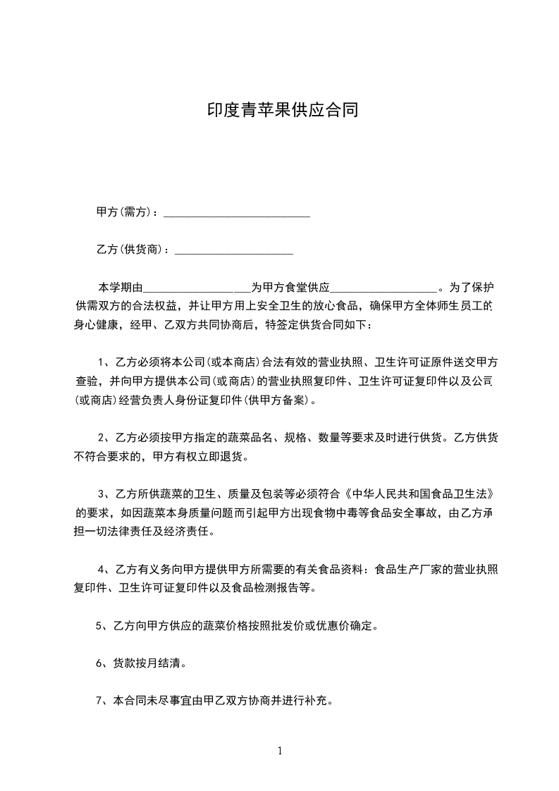 印度青苹果供应合同