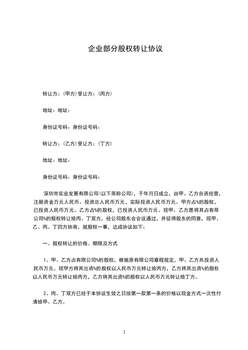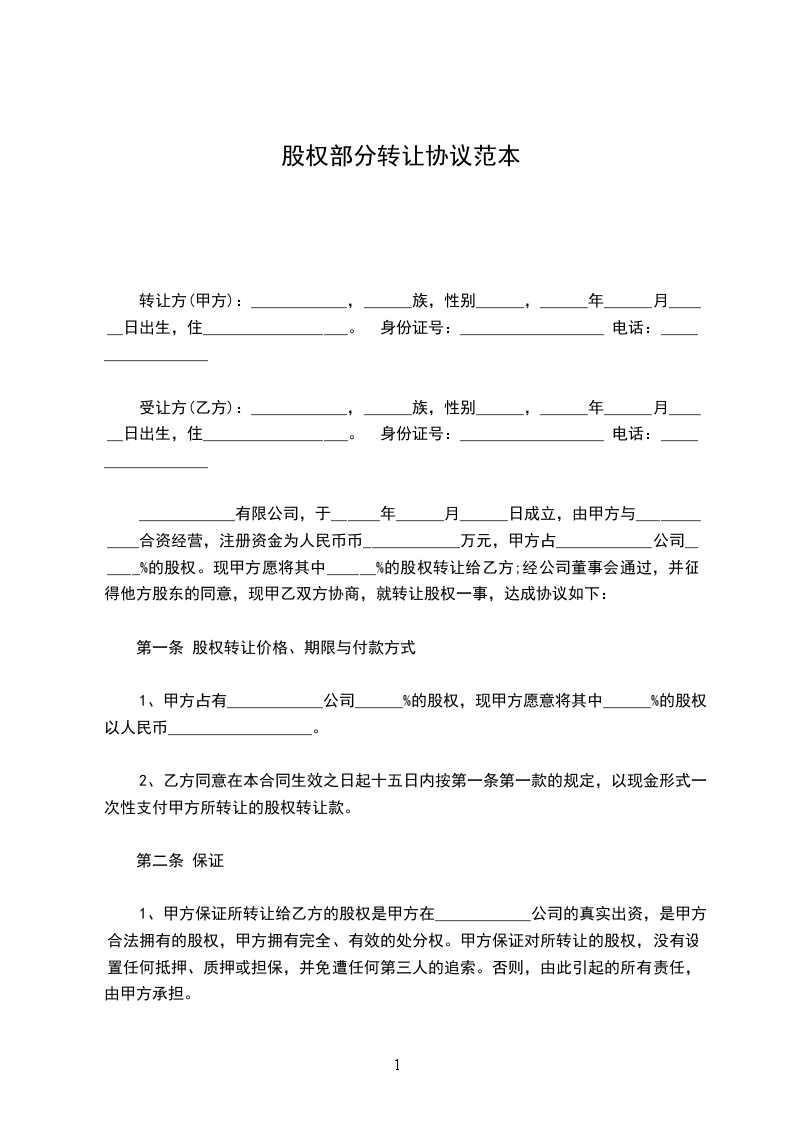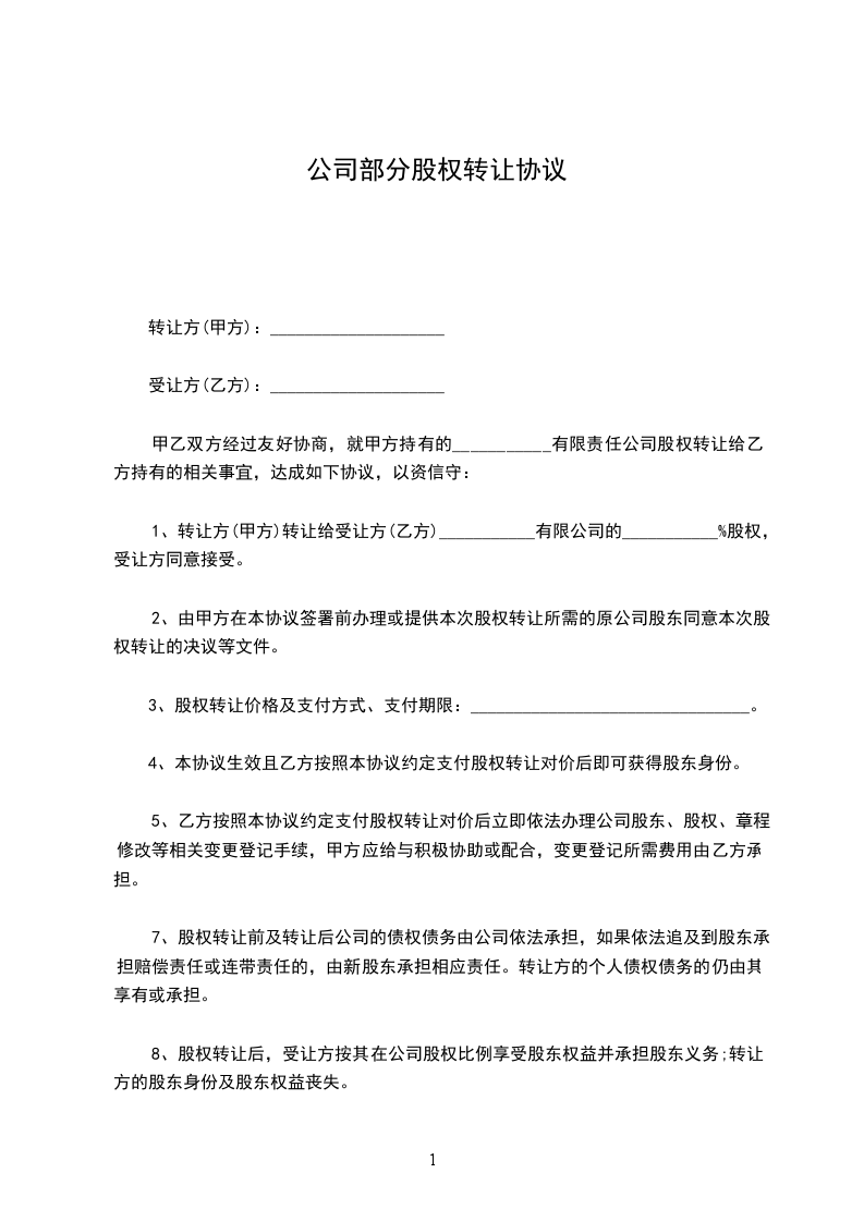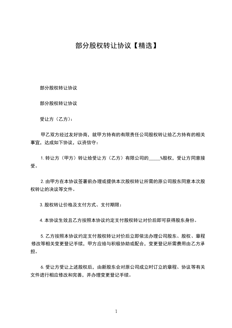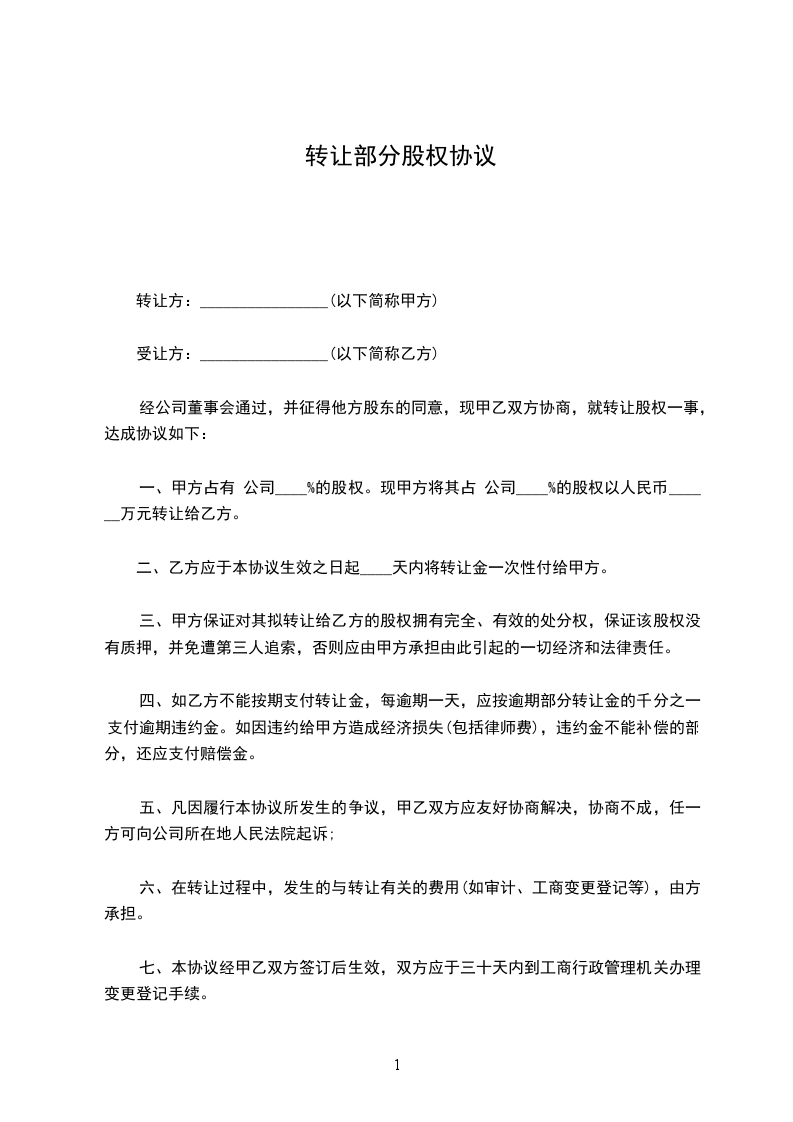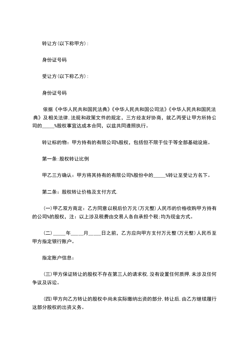 1.转让方(甲方)转让给受让方(乙方)有限公司的_____% 股权,受让方同意接受。