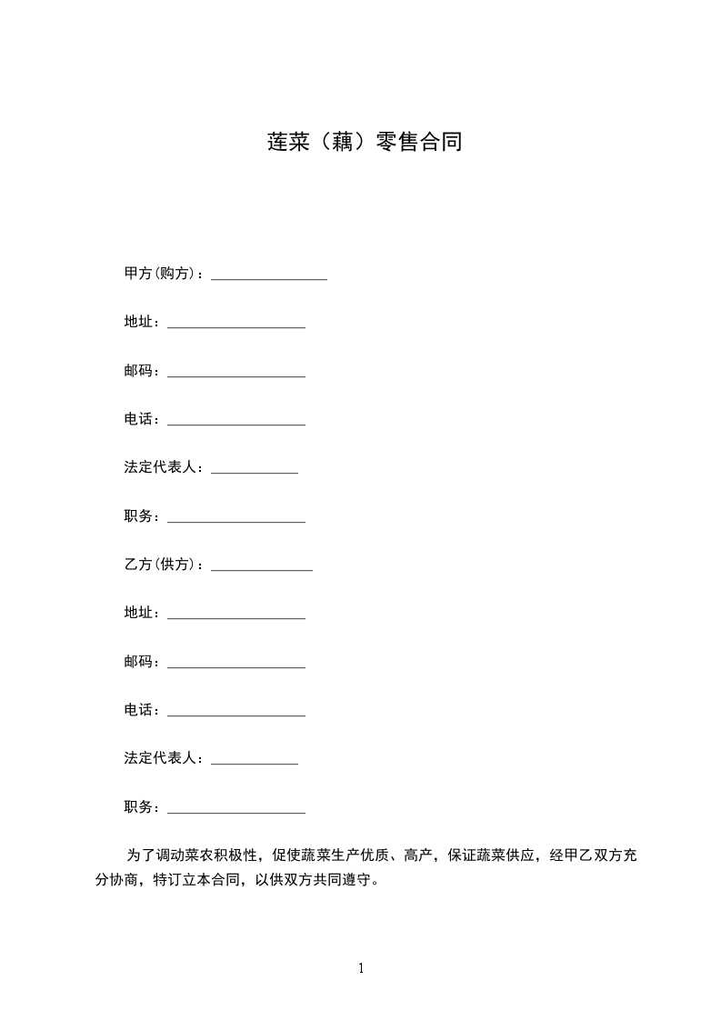 为了调动菜农积极性,促使蔬菜生产优质、高产,保证蔬菜供应,经甲乙双方充分协商,特订立本合同,以供双方共同遵守。