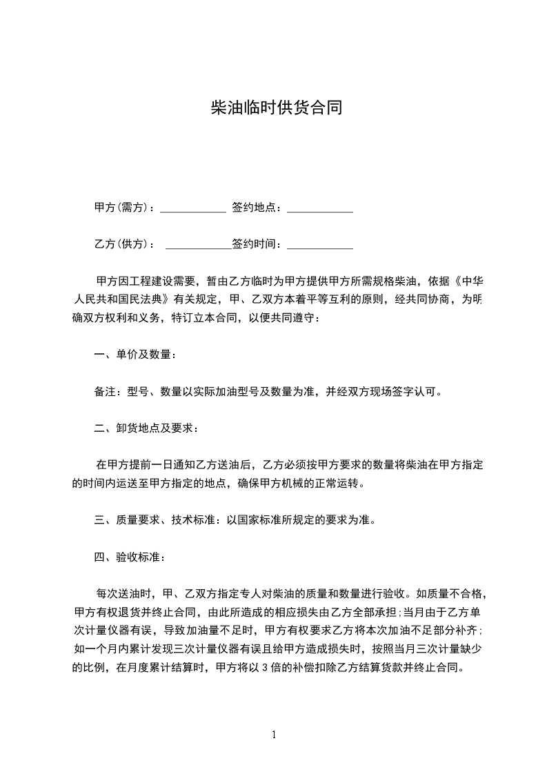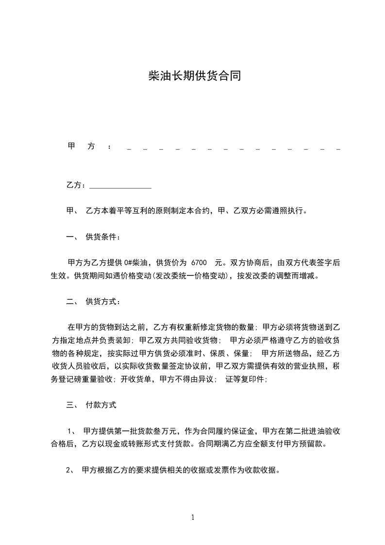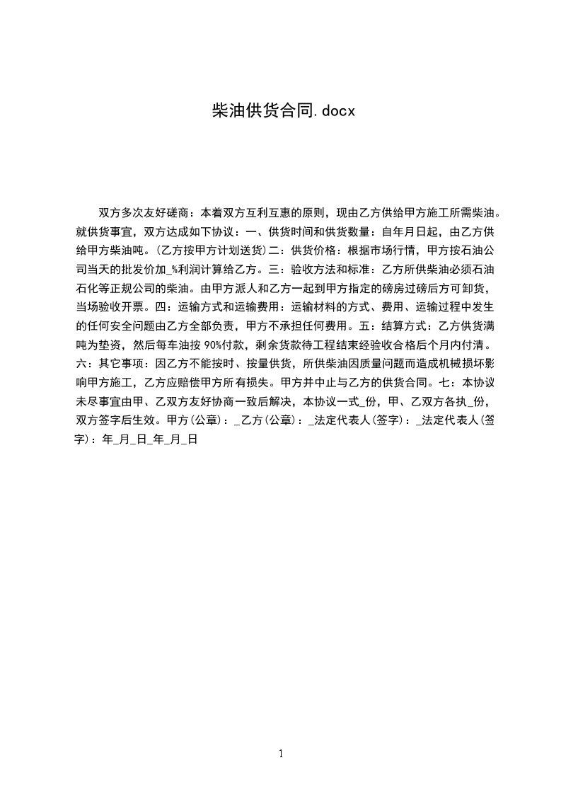 为了确保 工地工程顺利进行,经甲、乙双方多次友好磋商:本着双方互利互惠的原则,现由乙方供给甲方施工所需柴油。就供货事宜,双方达成如下协议: