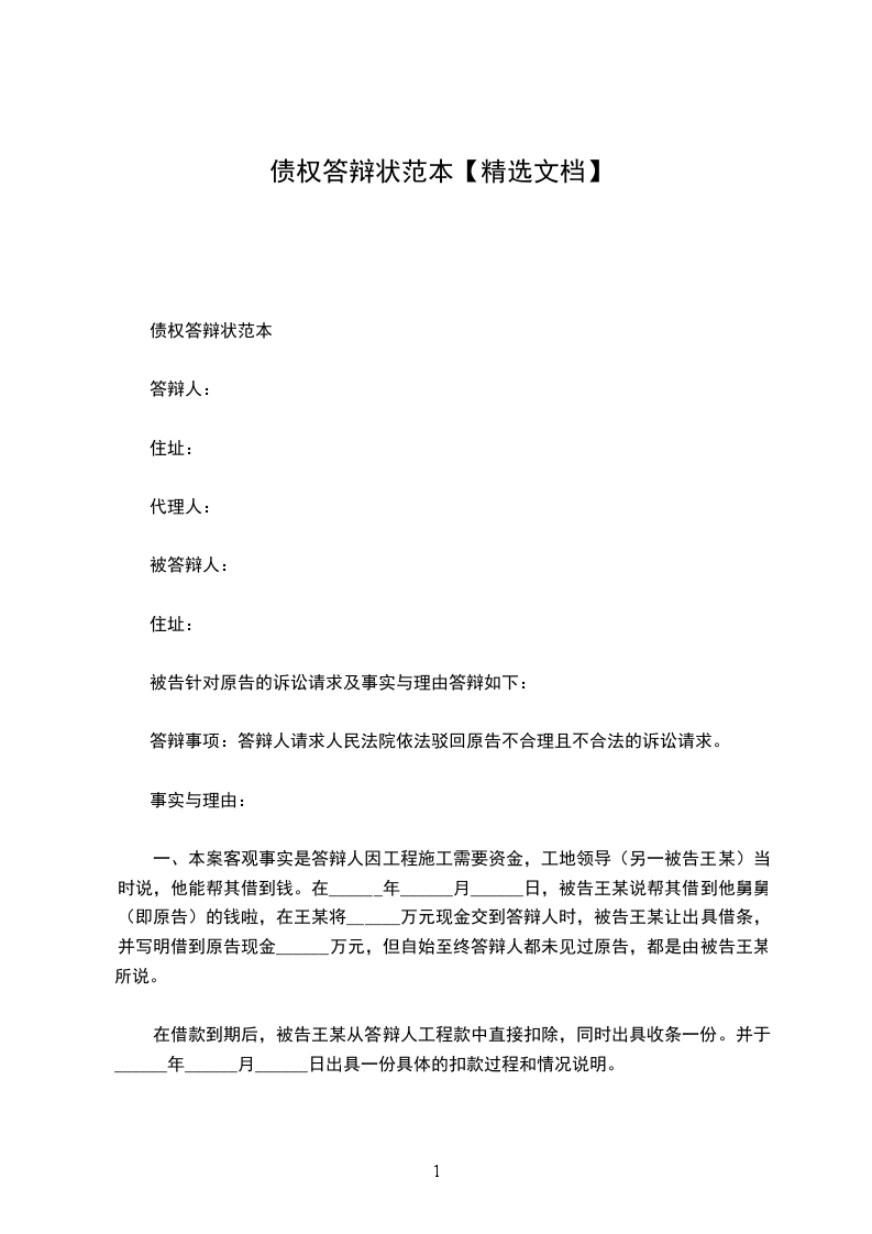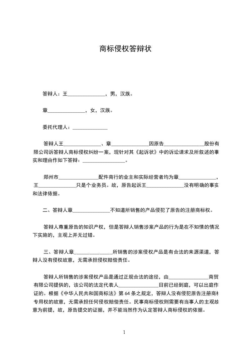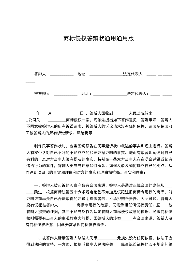 答辩人:住址:代理人:被答辩人:住址:风险提示: