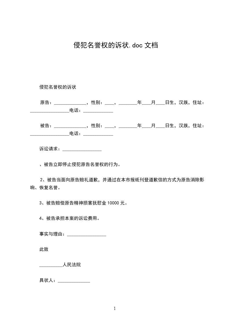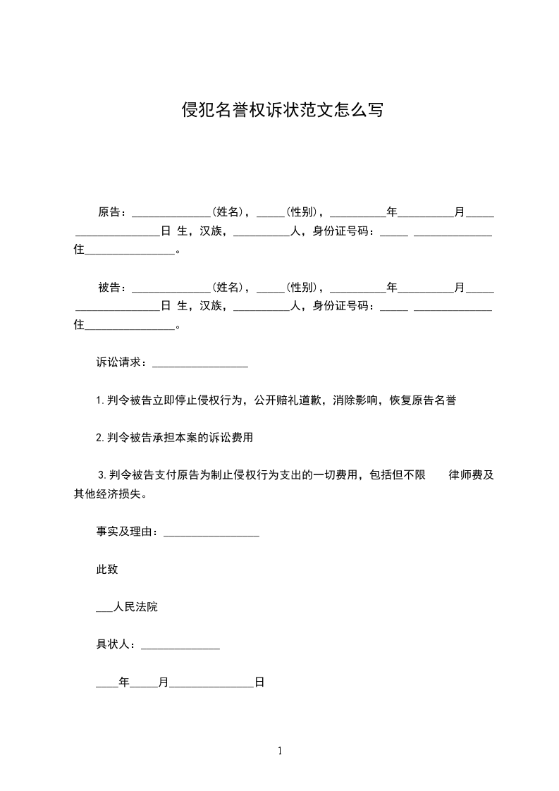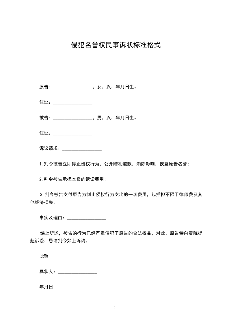 1.判令被告立即停止侵权行为,公开赔礼道歉,消除影响,恢复原告名誉