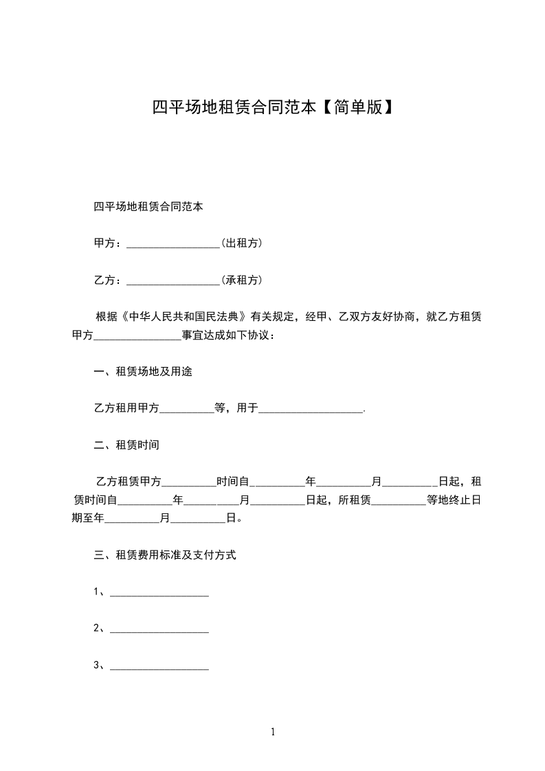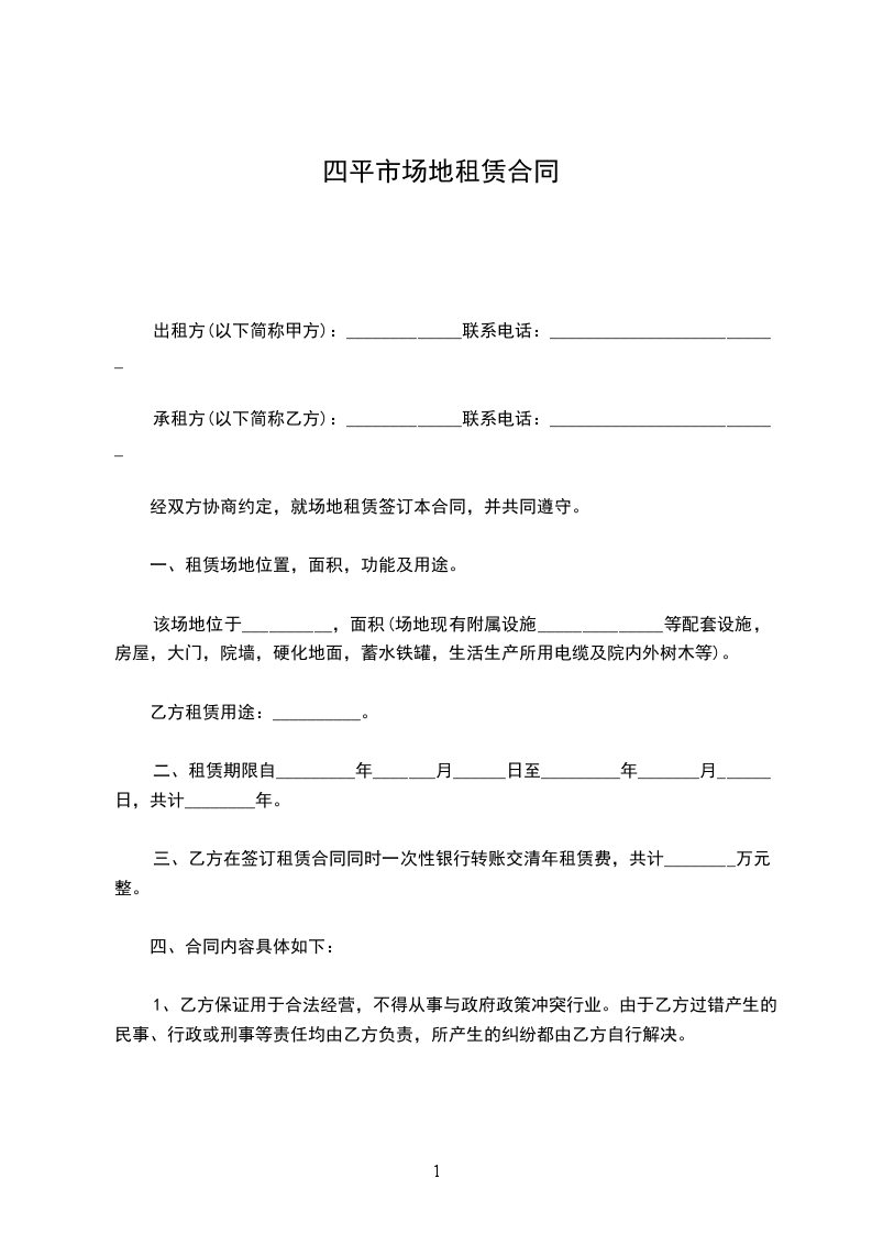 第一条 租借方向出租方租借停车用地为_________平方米,地点:____________________。