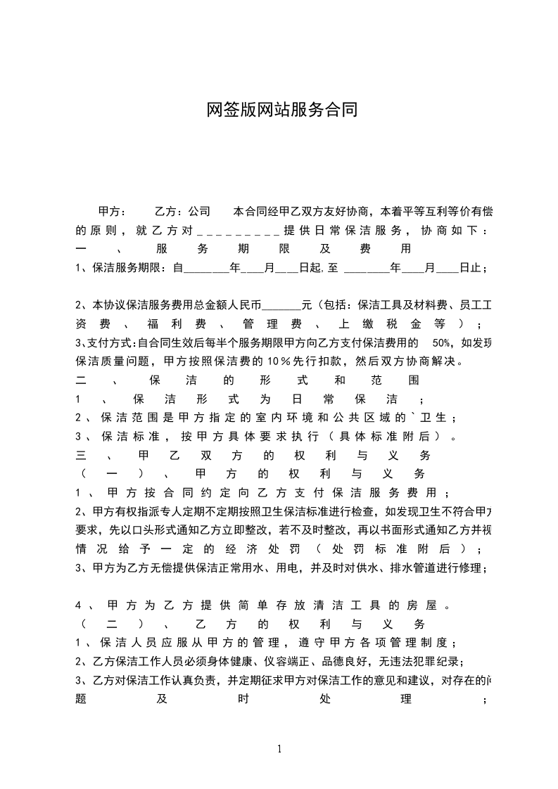 1、保洁服务期限:自________年____月____日起,至 ________年____月____日止;