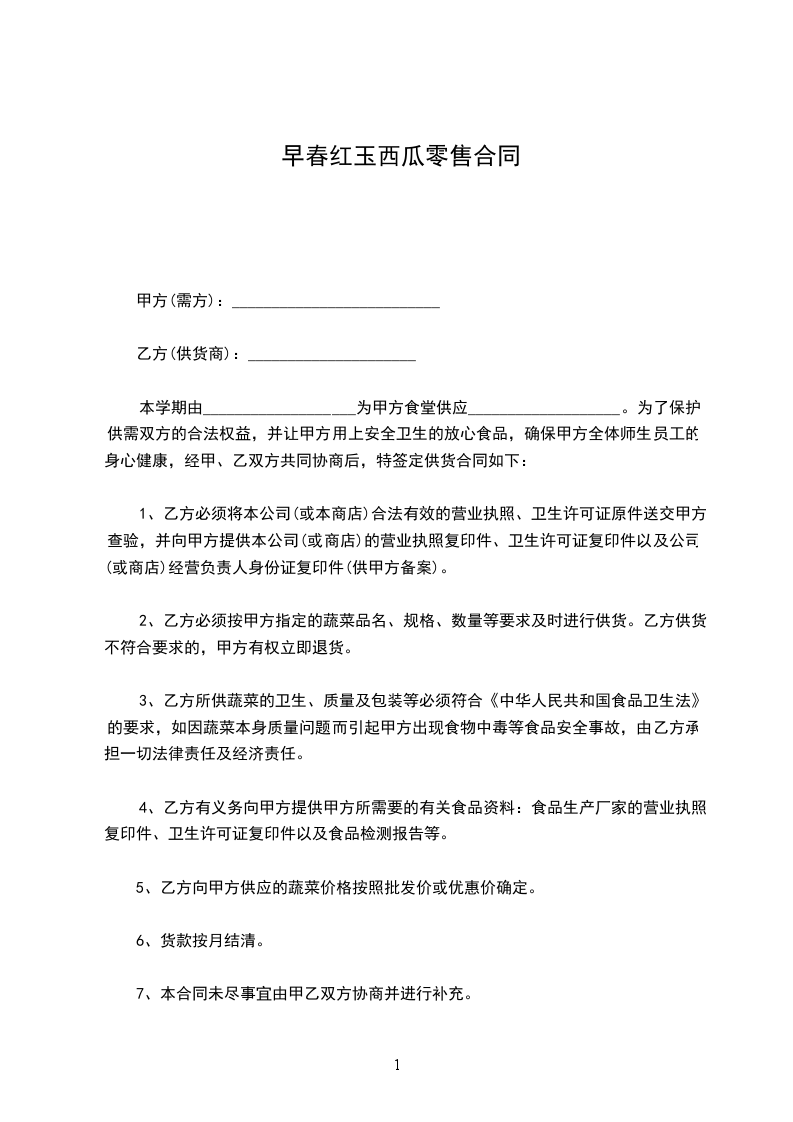 5、乙方向甲方供应的蔬菜价格按照批发价或优惠价确定。