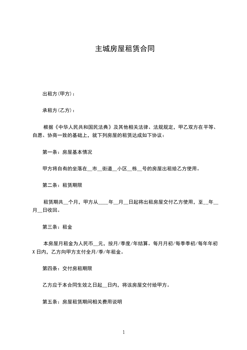 根据《中华人民共和国民法典》及其他相关法律、法规规定,甲乙双方在平等、自愿、协商一致的基础上,就下列房屋的租赁达成如下协议: