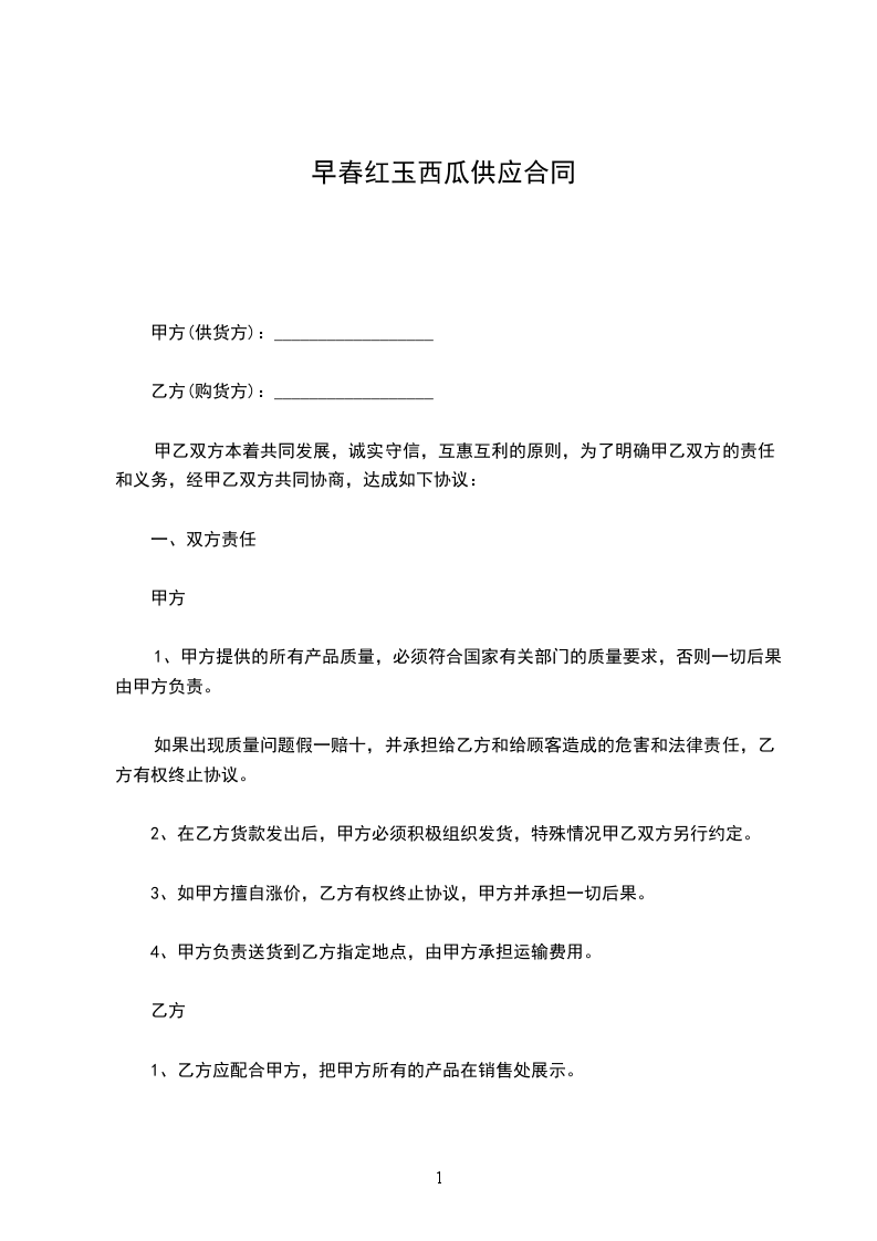 甲乙双方本着共同发展,诚实守信,互惠互利的原则,为了明确甲乙双方的责任和义务,经甲乙双方共同协商,达成如下协议: