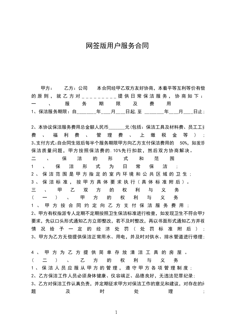 甲方: 乙方:公司 本合同经甲乙双方友好协商,本着平等互利等价有偿的原则,就乙方对_________提供日常保洁服务,协商如下:
