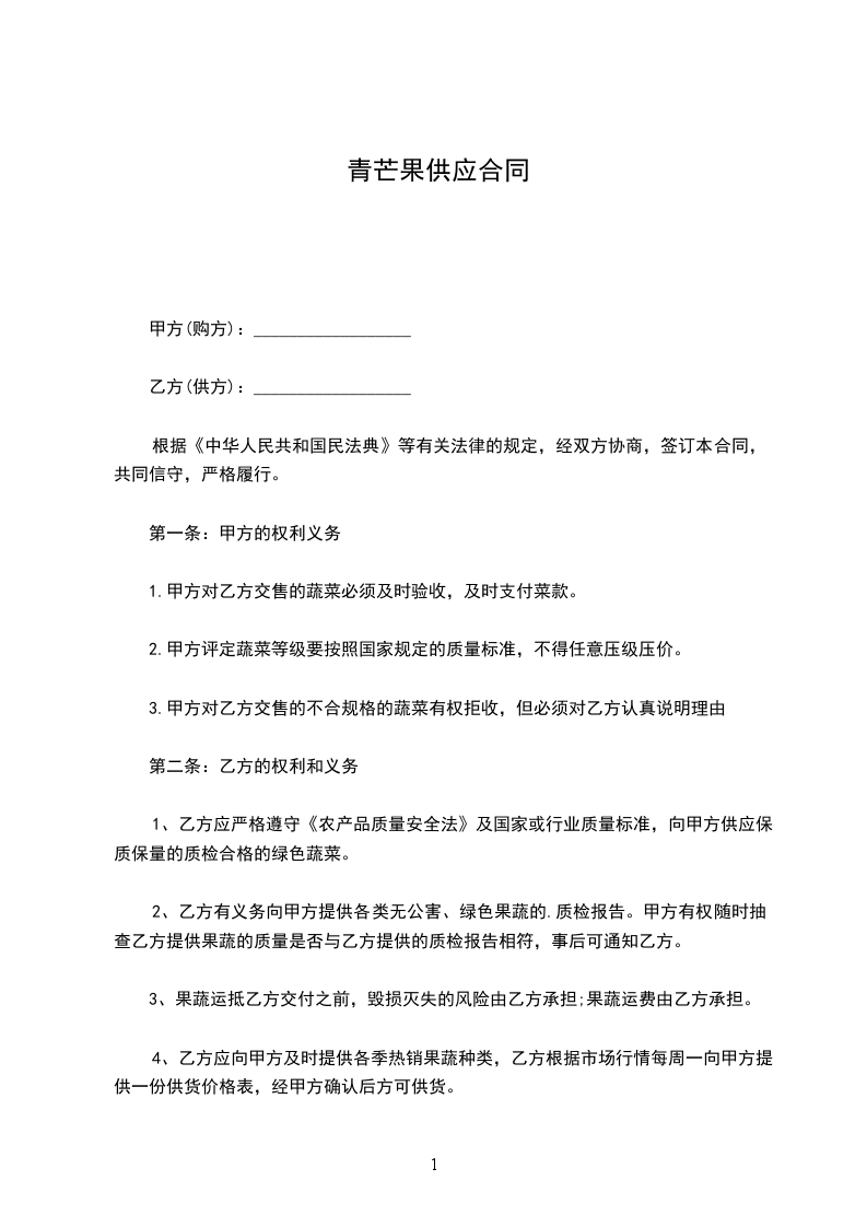 青芒果供应合同