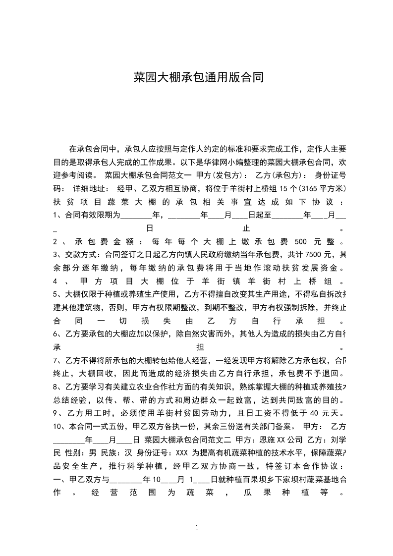 10、乙方不得将所承包的大棚转包给他人经营,一经发现甲方将解除乙方承包权,合同终止,大棚收回,因此而造成的经济损失由乙方自己承担,承包费及押金不予退回。