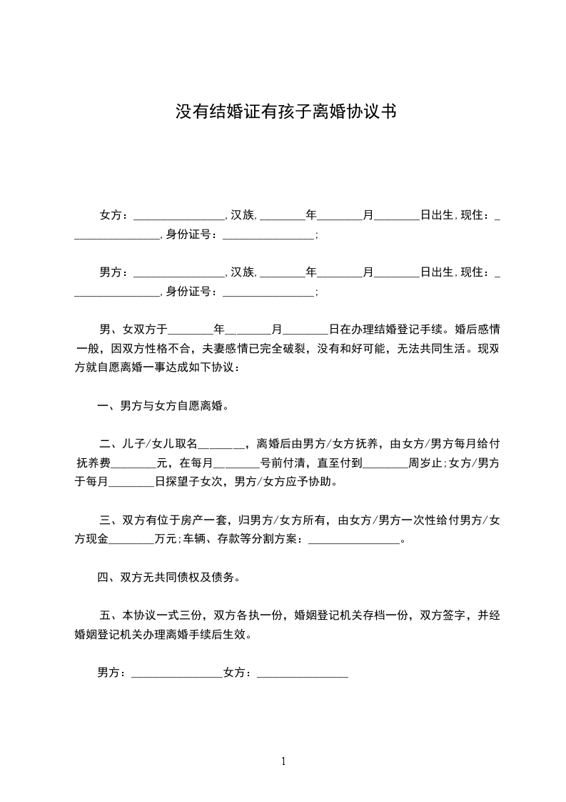 女方(乙方 ):____________________汉族, __________日 出生,身份证号:_______________