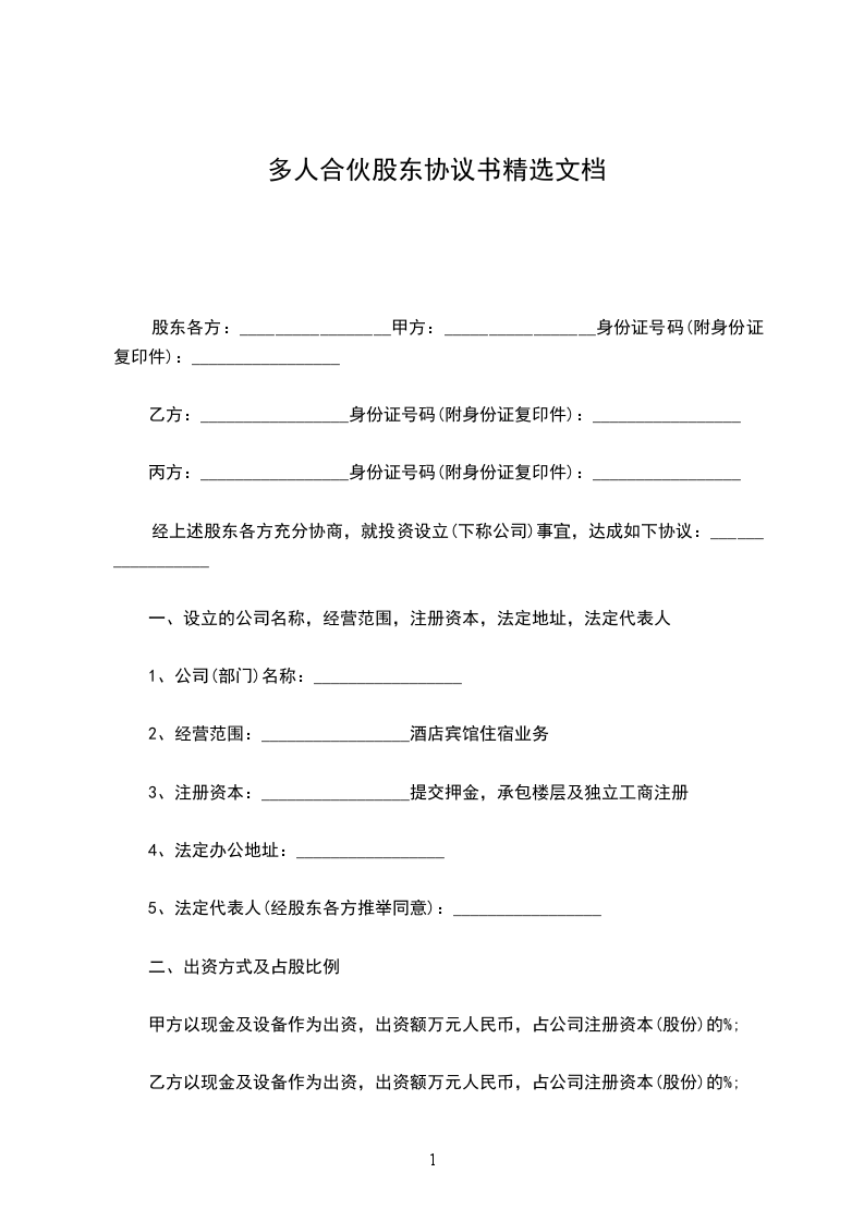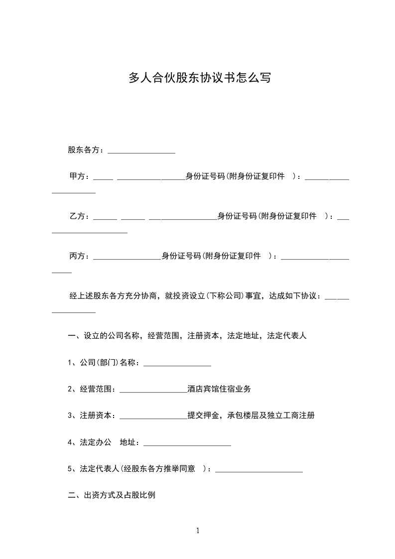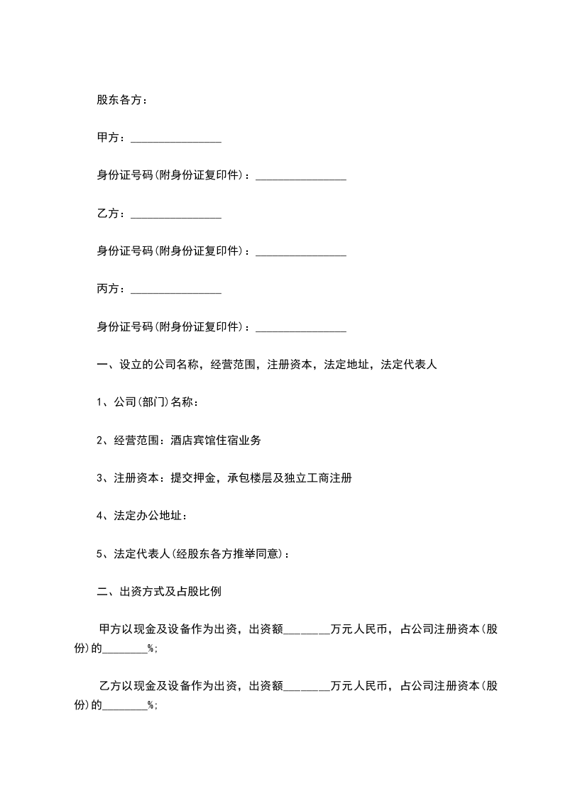 经上述股东各方充分协商,就投资设立(下称公司)事宜,达成如下协议:_________________