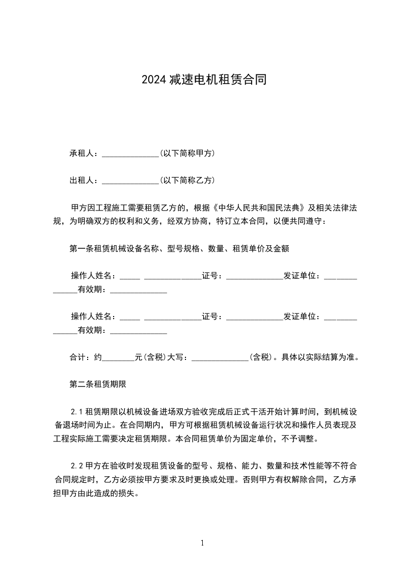 第一条租赁机械设备名称、型号规格、数量、租赁单价及金额