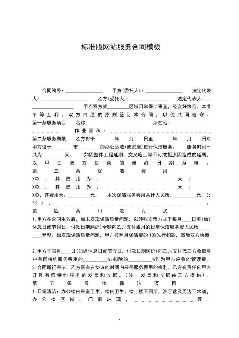 1.乙方保证认真完成《清洁标准及定期作业指导书》规定的作业项目和标准,确保卫生质量,达到客户满意。