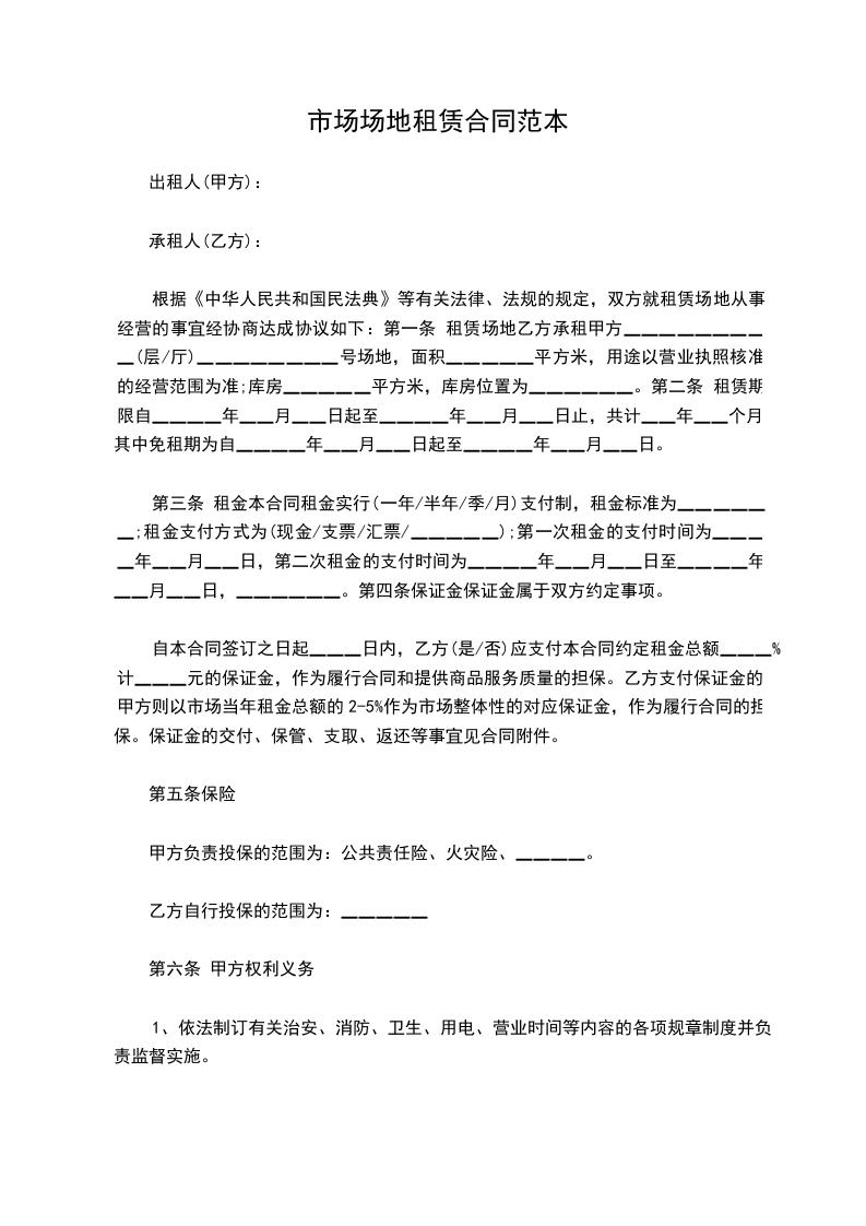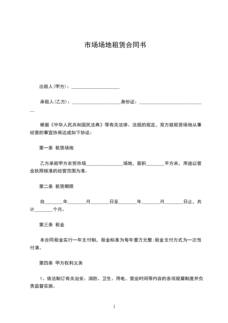 市场场地租赁合同范本