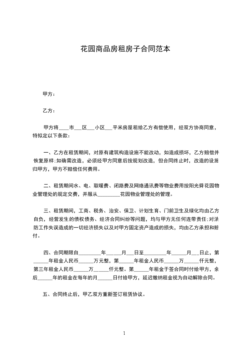 二、租赁期间水、电、取暖费、闭路费及网络通讯费等物业费用按阳光舜花园物业管理处的规定交费,并服从_________花园物业管理处的管理。