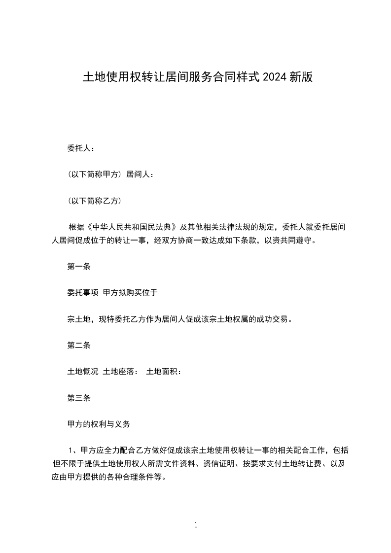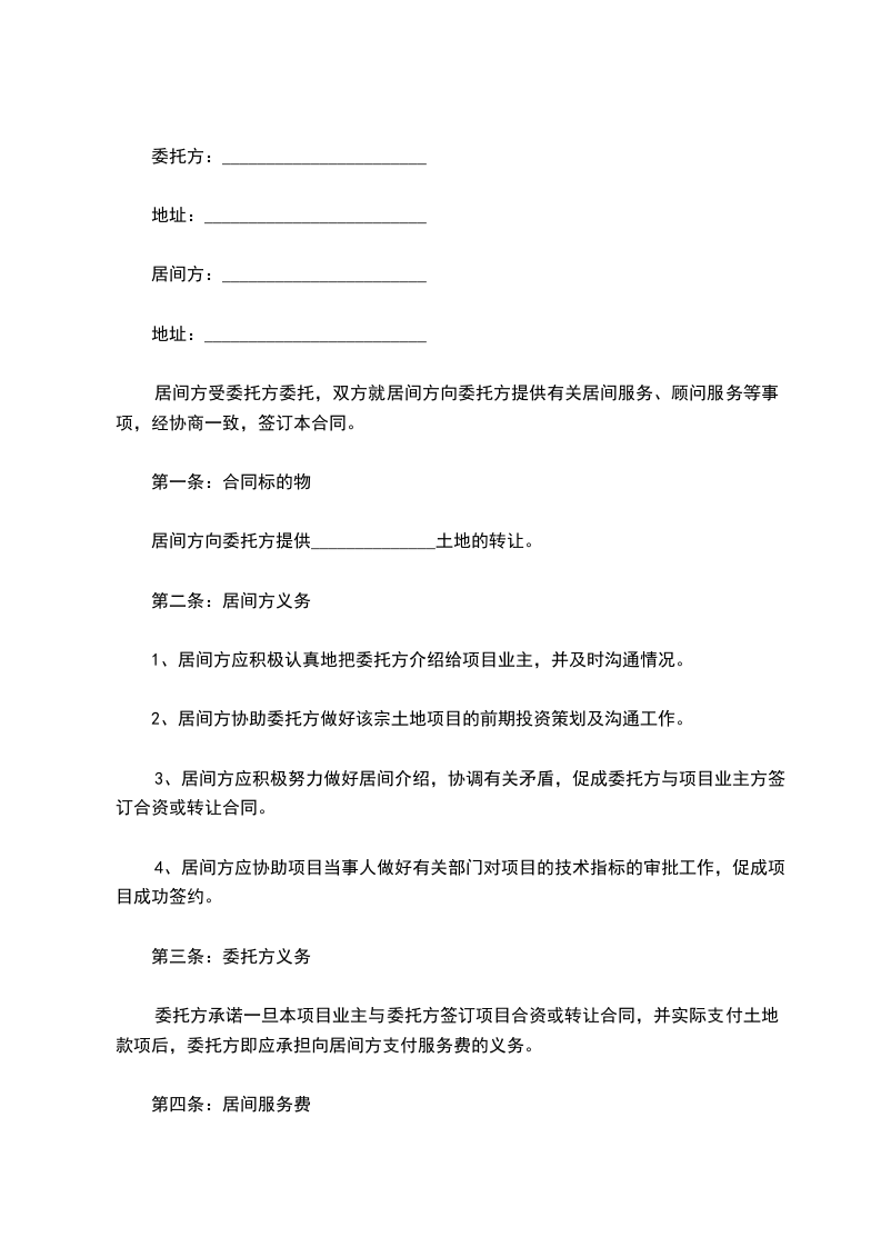 1、居间报酬 双方经协商确定,该项居间服务的报酬按照甲方与指定土地使用权人签订的土地出让合同金额