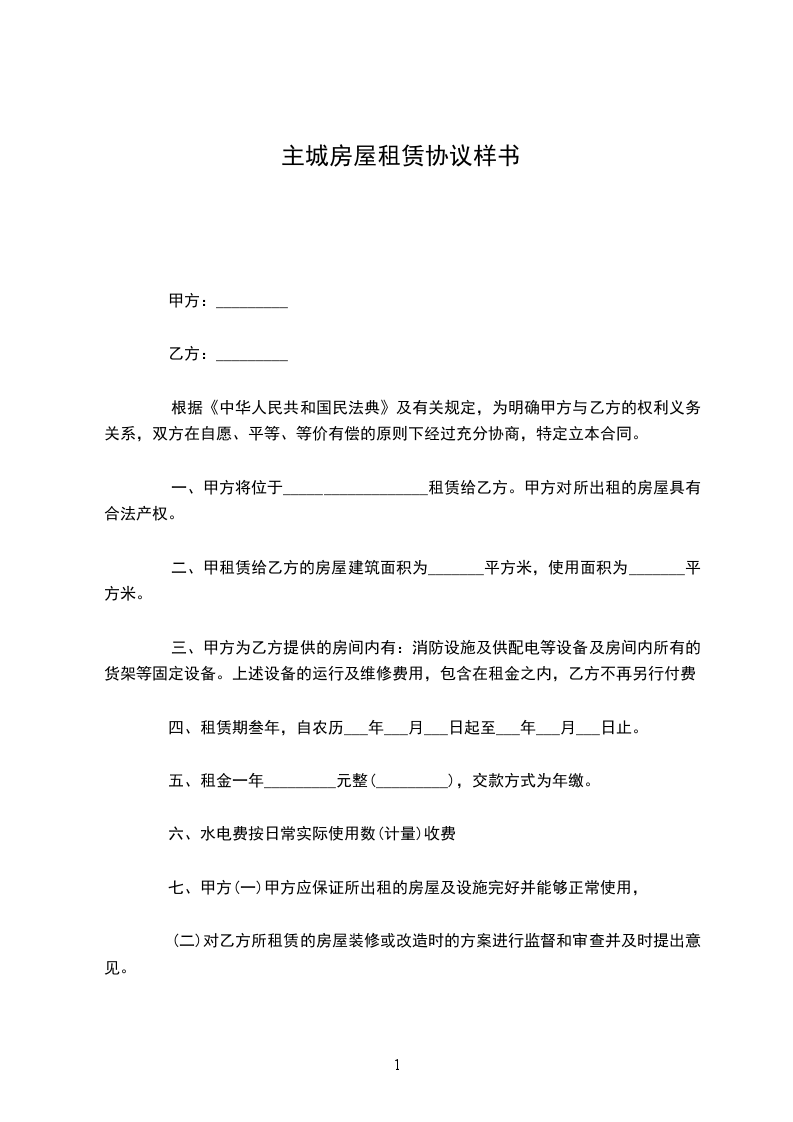 主城房屋租赁协议样本