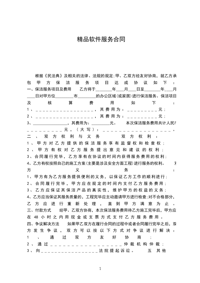 3、_________________,其费用为:_________元。 本次保洁服务费用共计人民币:_________元,(大写):_________________。