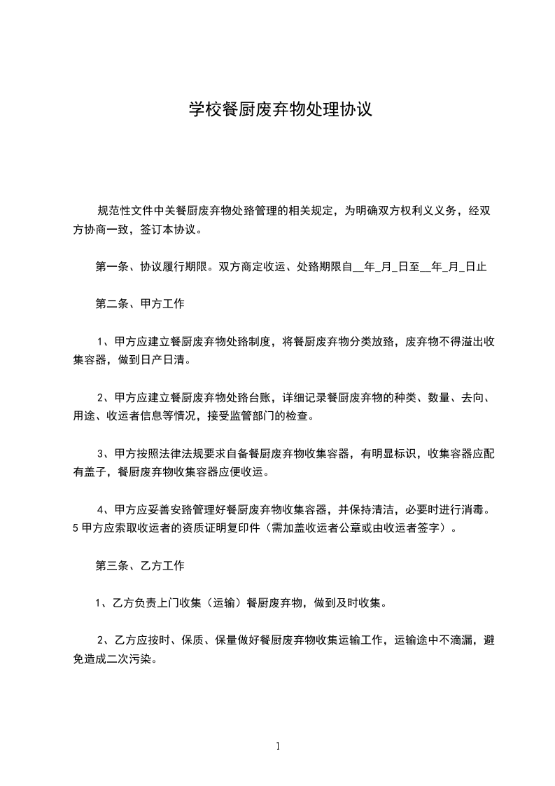 受甲方委托,乙方负责收运、处置甲方产生的餐厨废弃物。根据《中华人民共和国民法典》和餐厨废弃物处置管理相关法规,为明确双方权利义务关系,经双方协商一致,签订本合同。