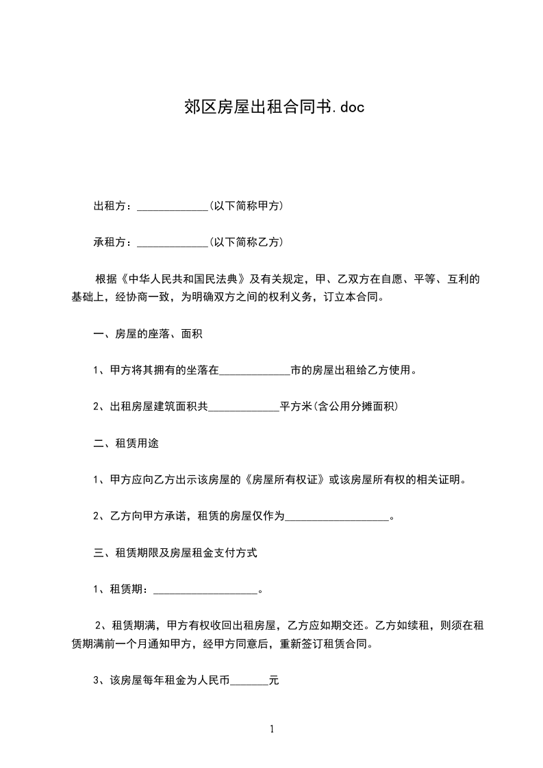 一、出租地点:_______________________。出租面积:_______________________。