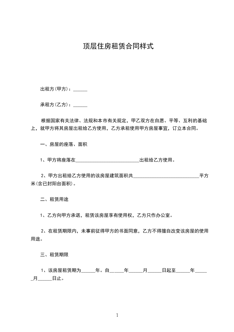 1、该房屋租赁期为______年。自______年______月______日起至______年______月______日止。