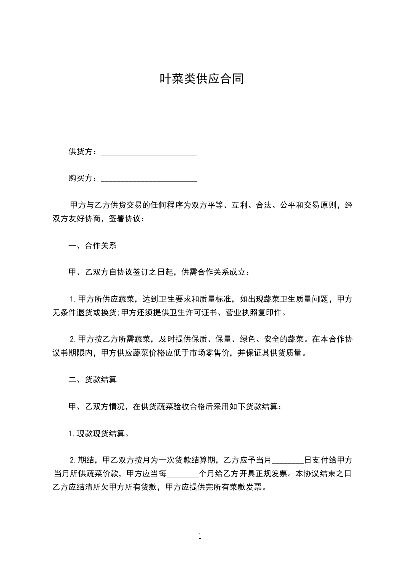 1.甲方所供应蔬菜,达到卫生要求和质量标准,如出现蔬菜卫生质量问题,甲方无条件退货或换货;甲方还须提供卫生许可证书、营业执照复印件。