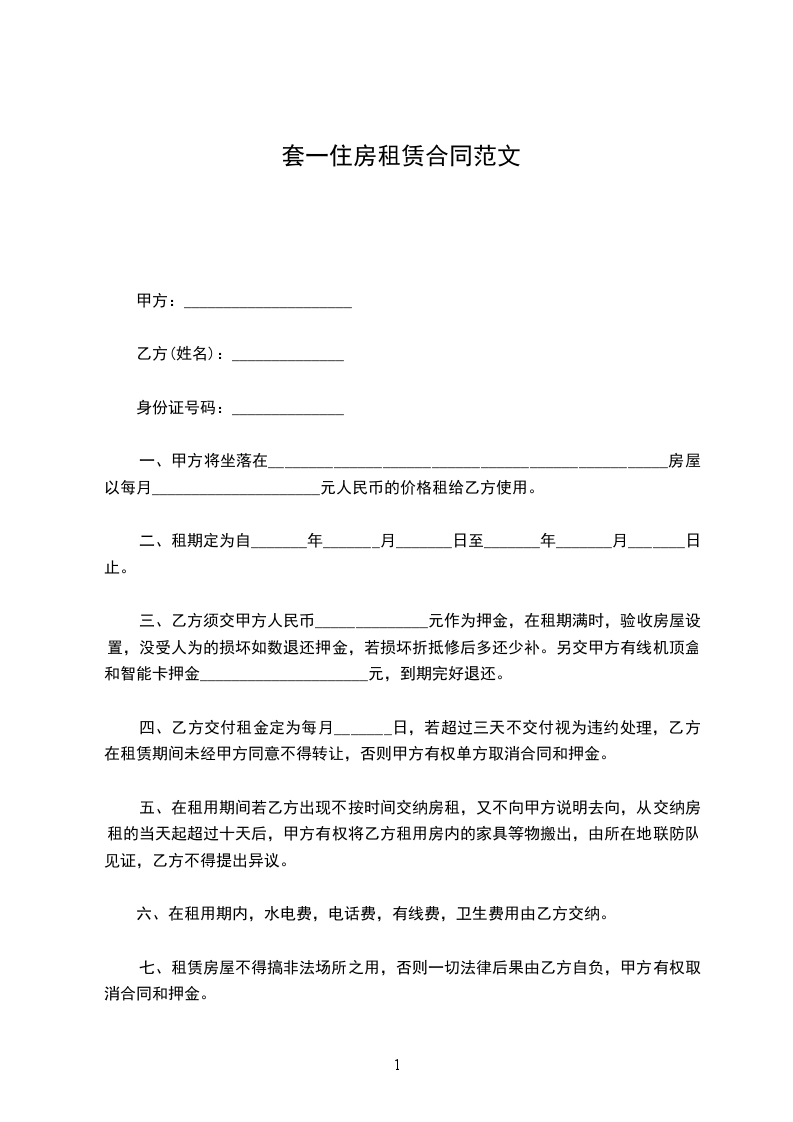 七、租赁房屋不得搞非法场所之用,否则一切法律后果由乙方自负,甲方有权取消合同和押金。