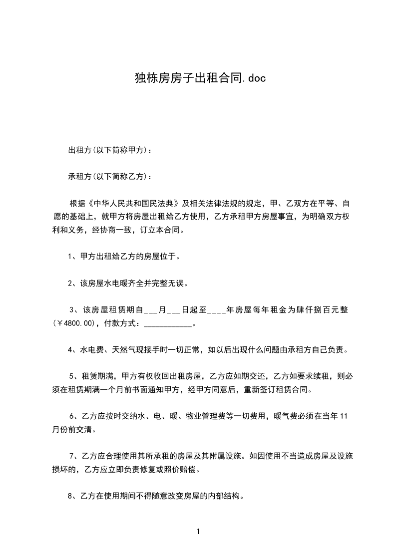 该房屋租金为(币)___万___千___百__拾__元每月,租赁期间,出租方不得以任何理由任意调整租金。