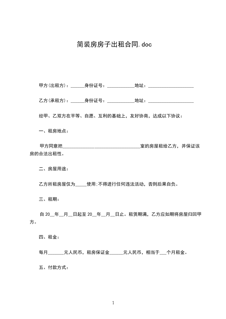该房屋用途为_____________,乙方不得任意改变房屋用途。