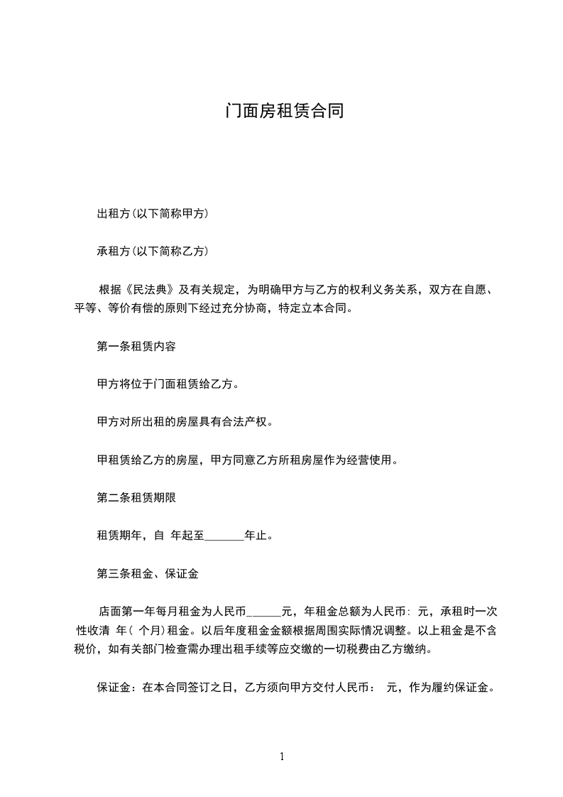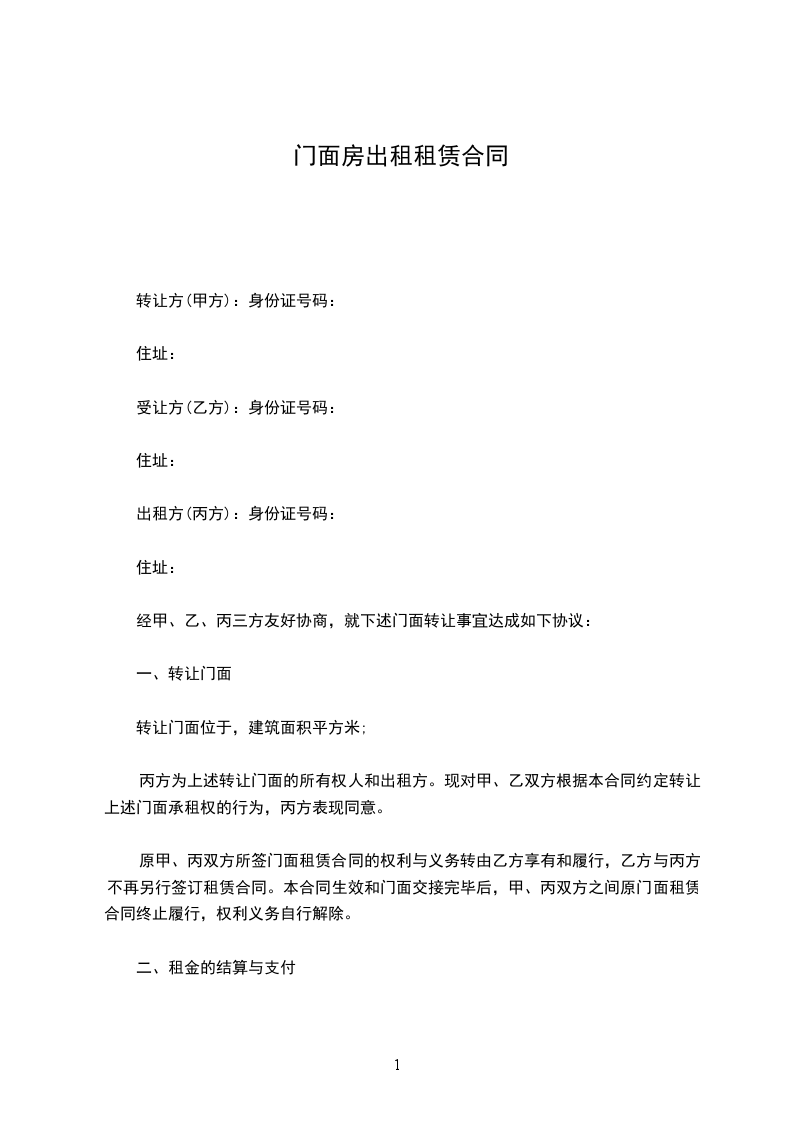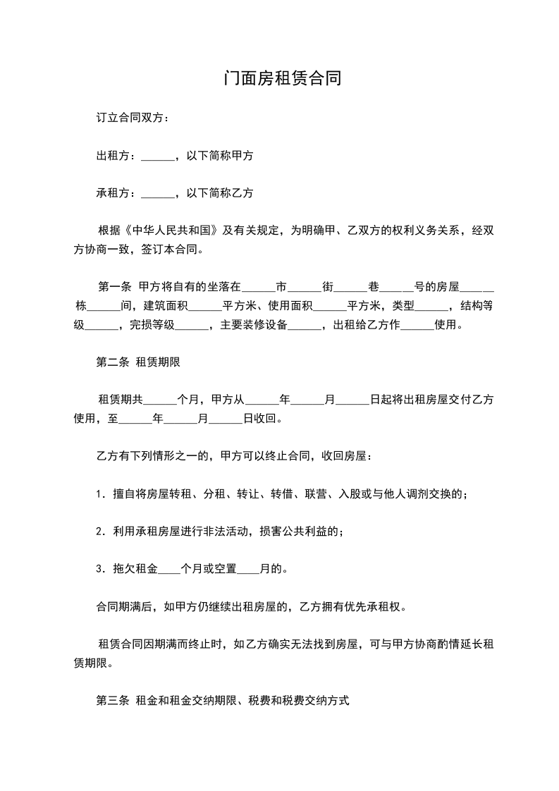 门面房租赁合同