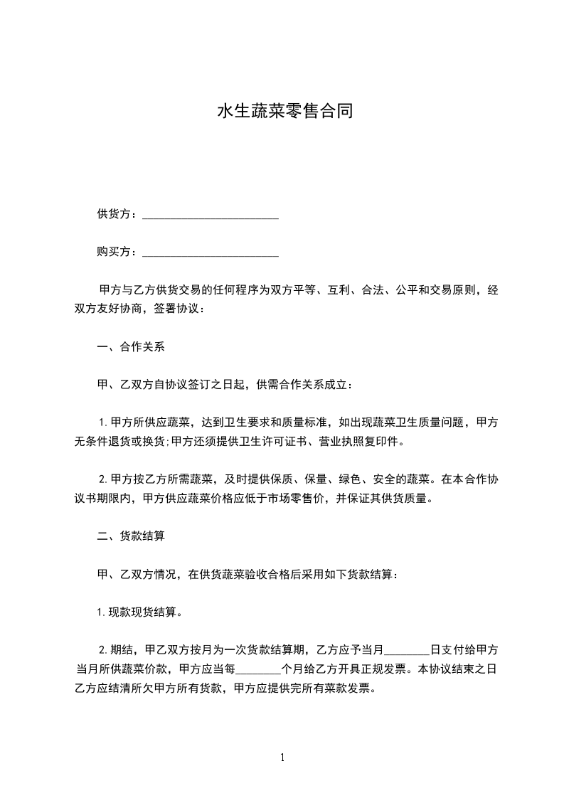 甲、乙双方情况,在供货蔬菜验收合格后采用如下货款结算: