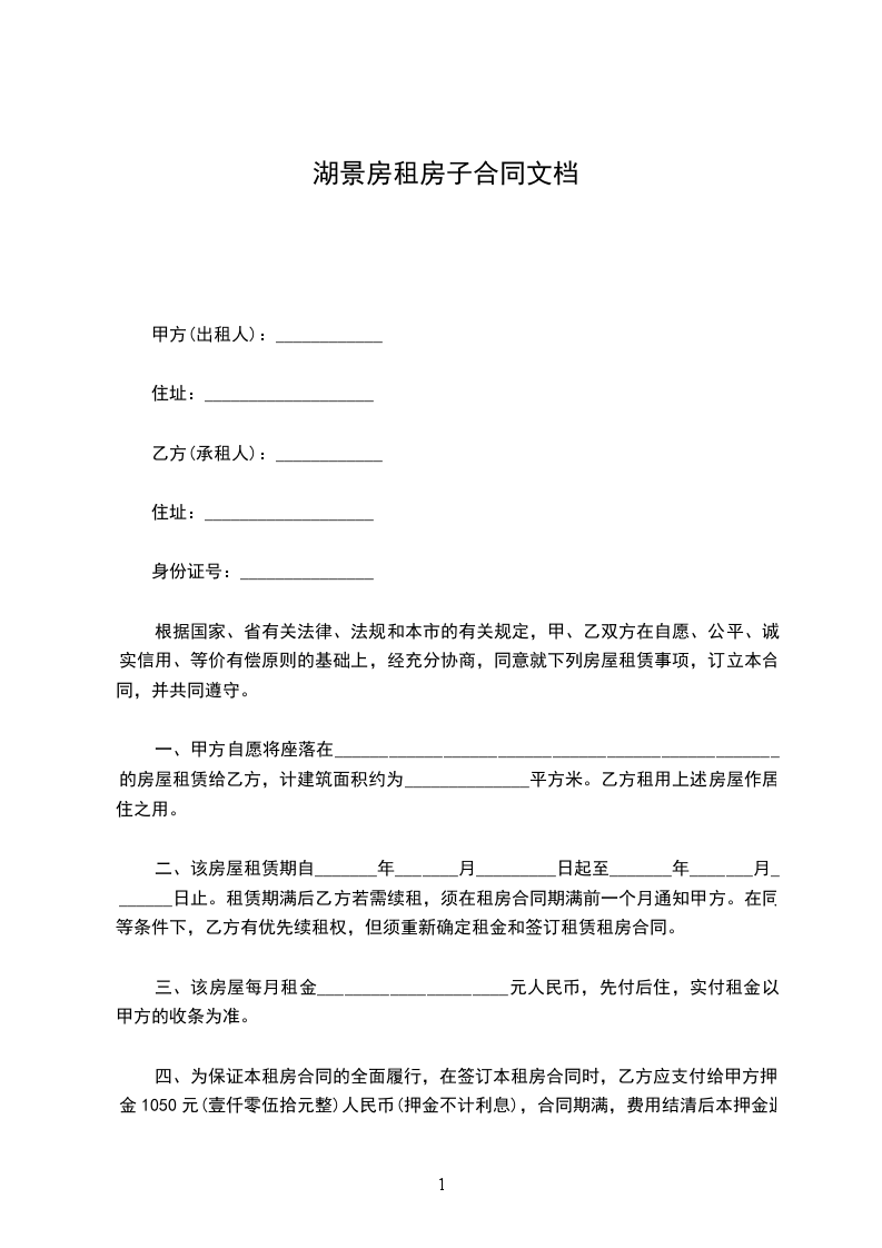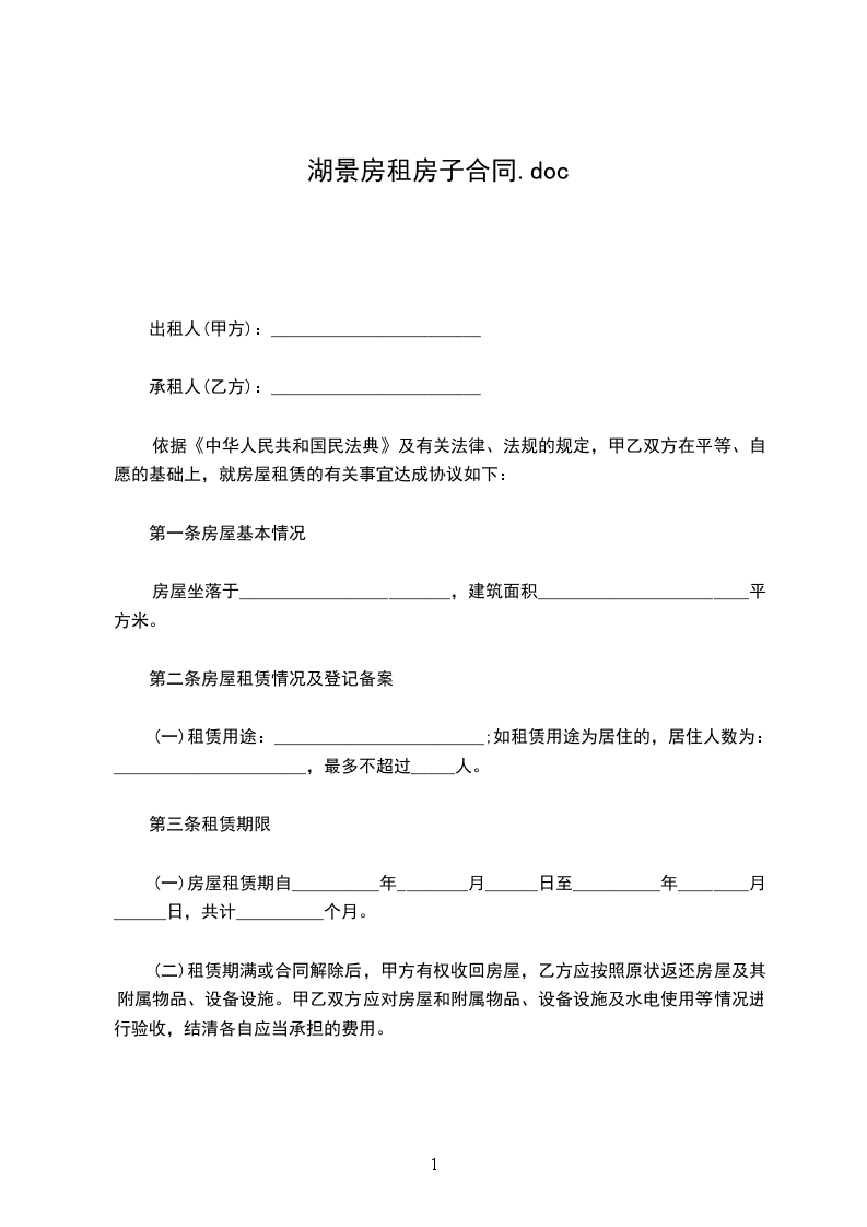 第一条本合同所指标的住房为_________________。乙方如果要增加合租人数,必须取得甲方书面同意。