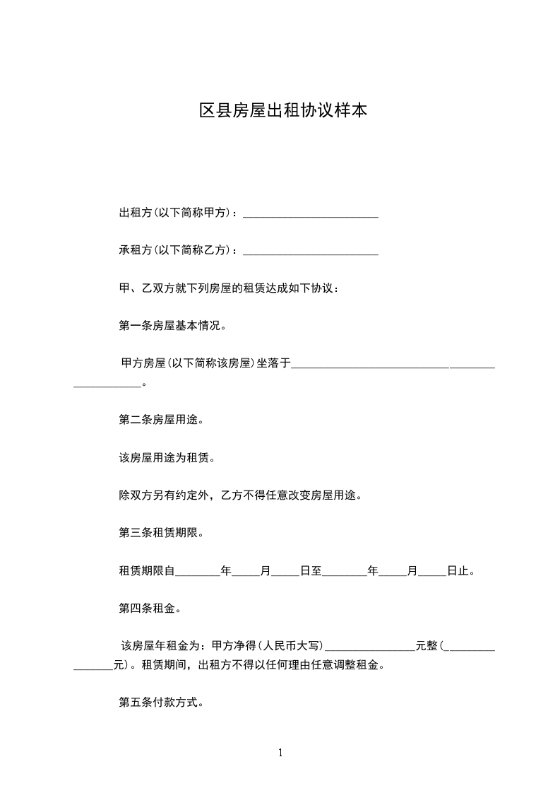 1、房屋租金人民币____元整(小写:¥____元),乙方应于本合同签订时向甲方一次性支付全部租金。