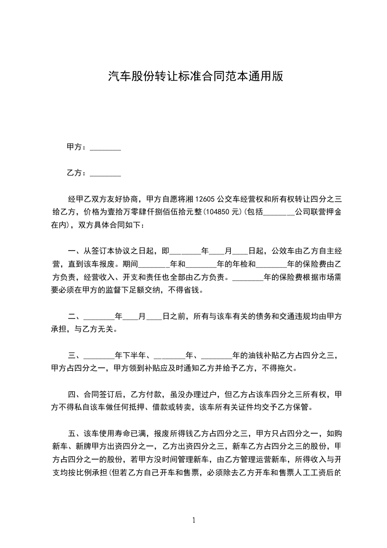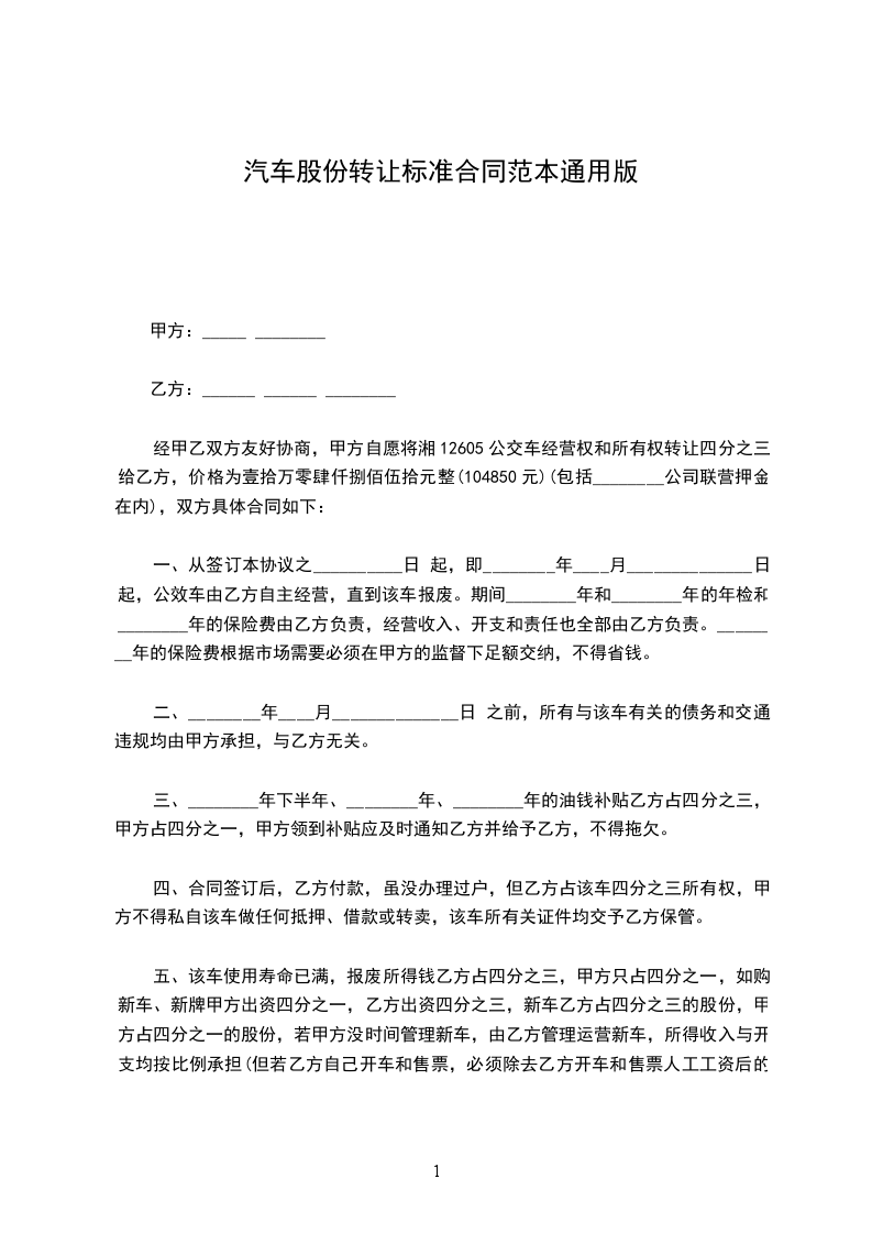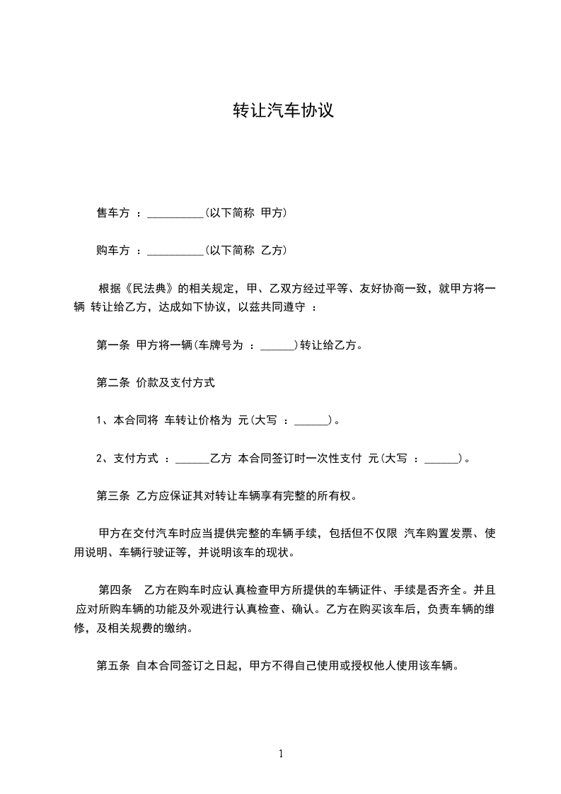 1、经双方协商该车的转让价为人民币 元。
