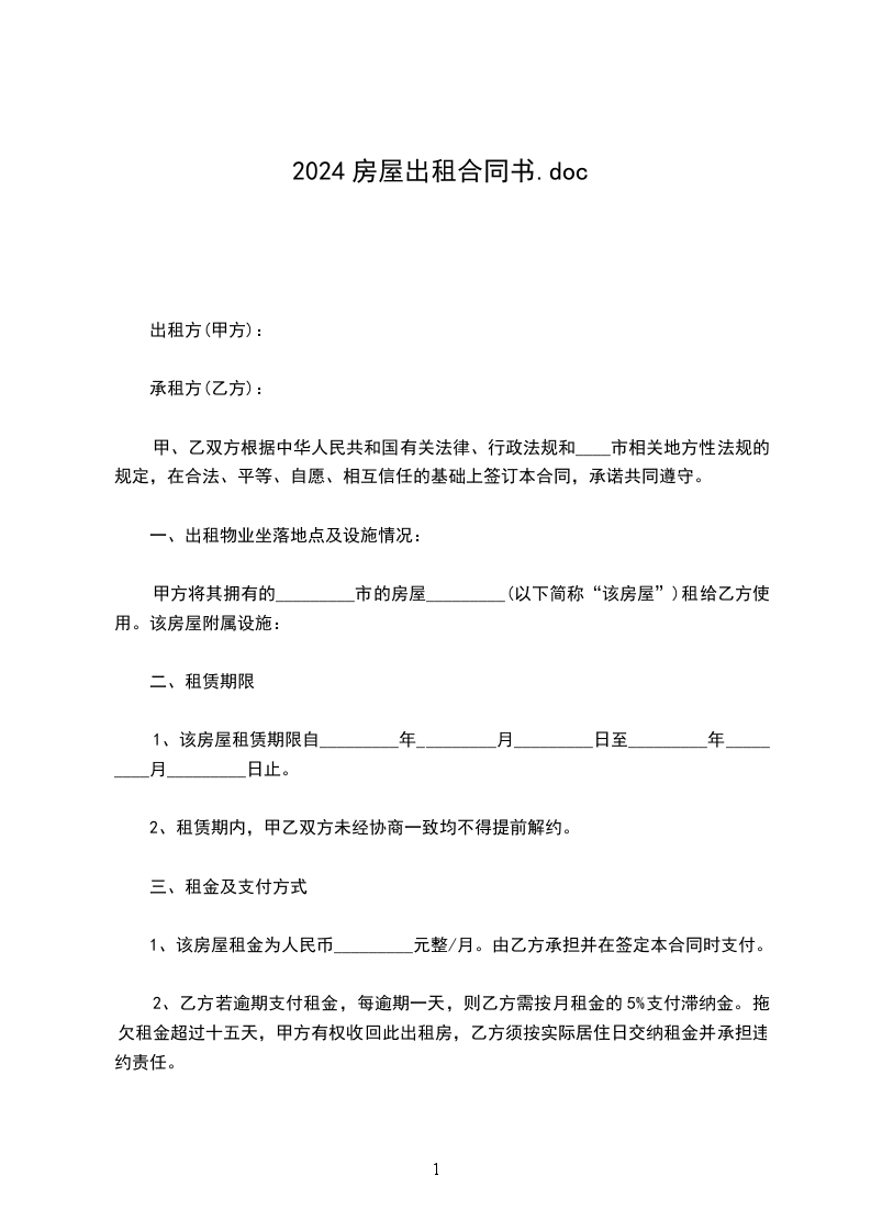 1、该房屋租赁期限自_________年_________月_________日至_________年_________月_________日止。