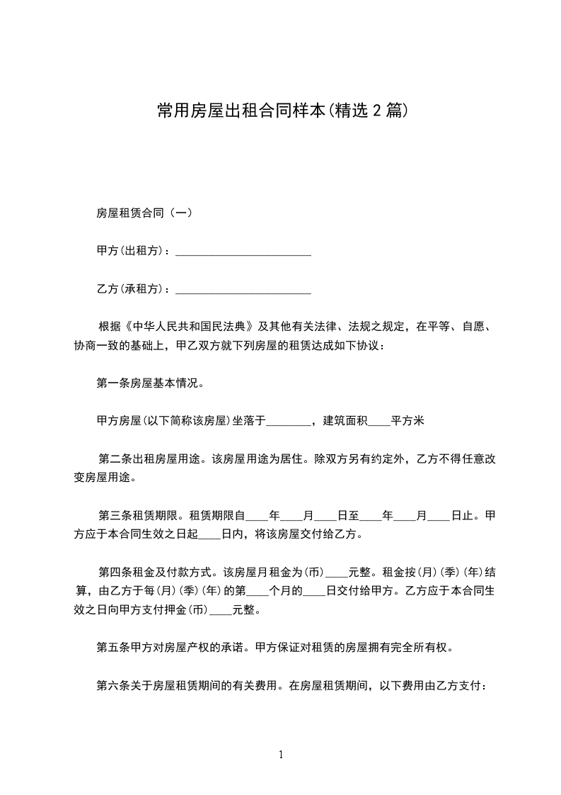 房屋租赁合同(一)