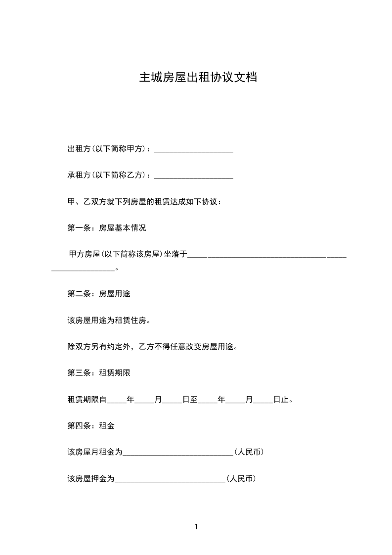 一、出租人愿意将座落在_________市_________区_________号的房子给承租人使用,承租人对此房屋现状已作充分了解,自愿租用。