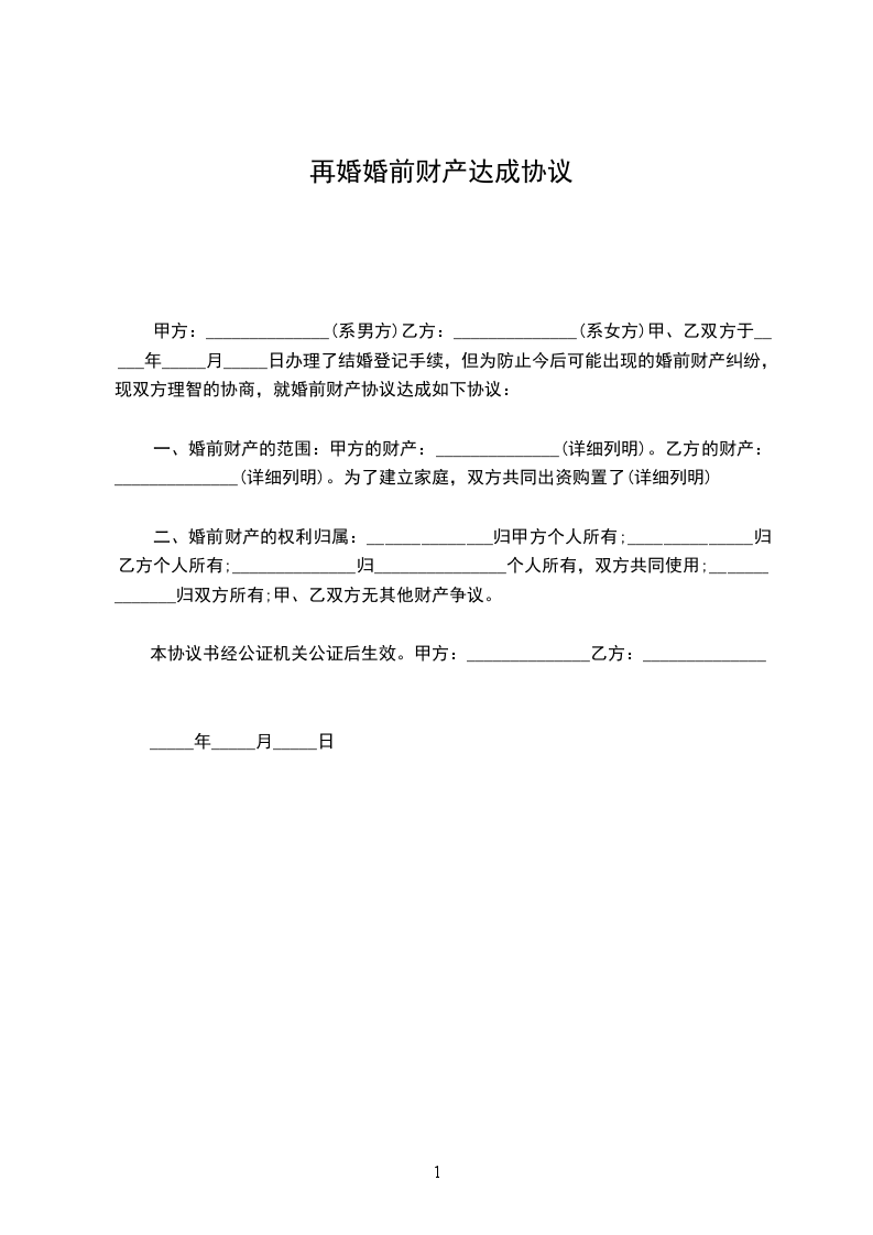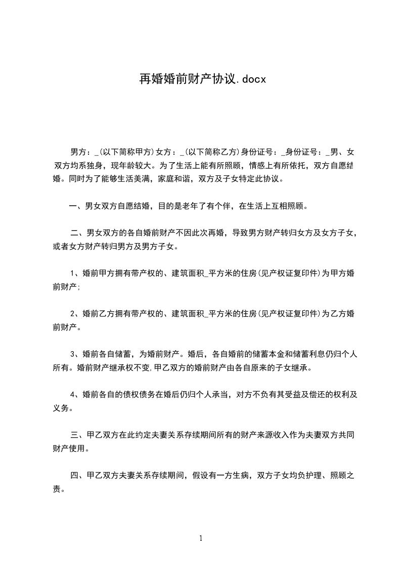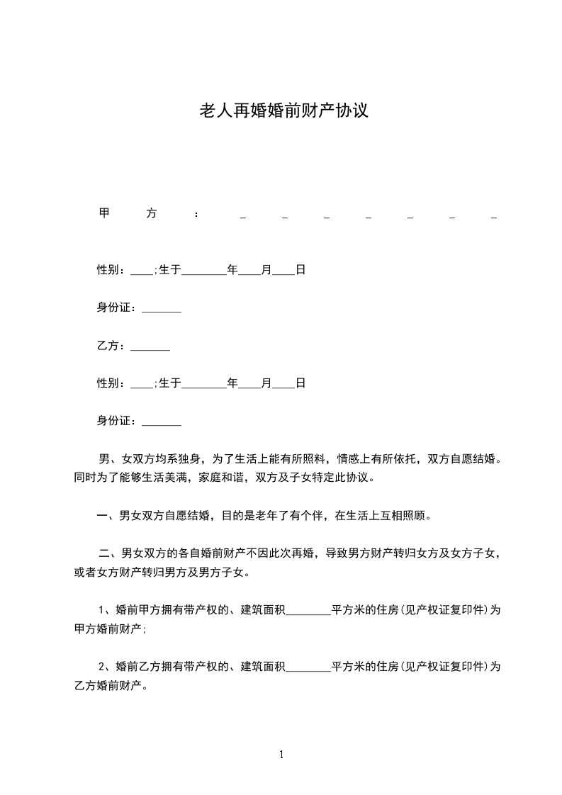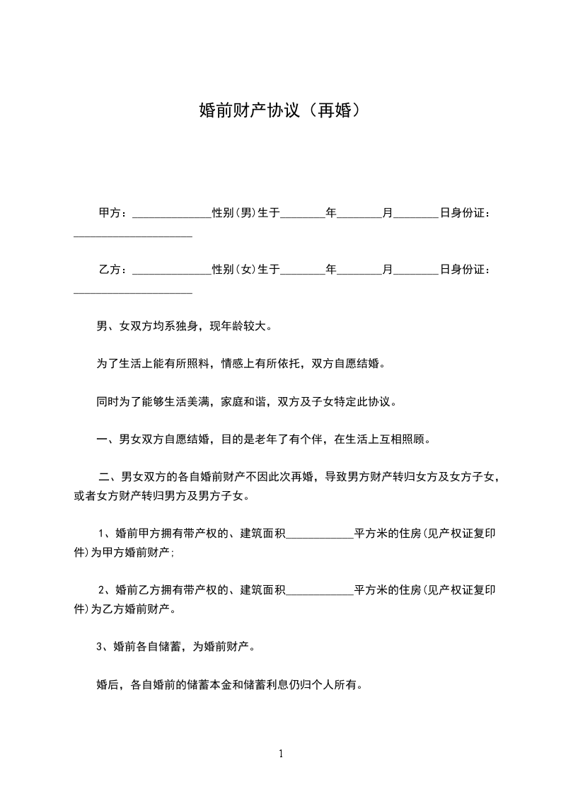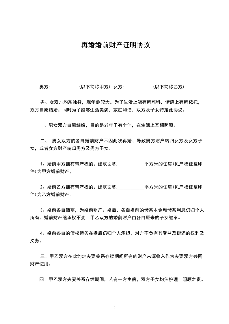 男女双方均已丧偶,生活实有困难,经过相互了解,自愿结成合法夫妻,但双方都有子女,为解决他们的后顾之忧,经双方充分考虑并协商,订立如下协议条款,以资共同遵守:_________________